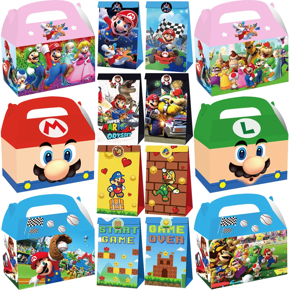 12Pcs Cartoon Super Bros Theme Party Paper Candy Bag With Sticker Marios Girls Birthday Candy Packin...
