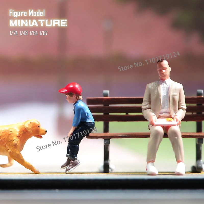 Miniatures 1/64 1/43 1/87 1/24 Forrest Gump Sitting on Bench with Little Body Dog Diorama Scene Figu...