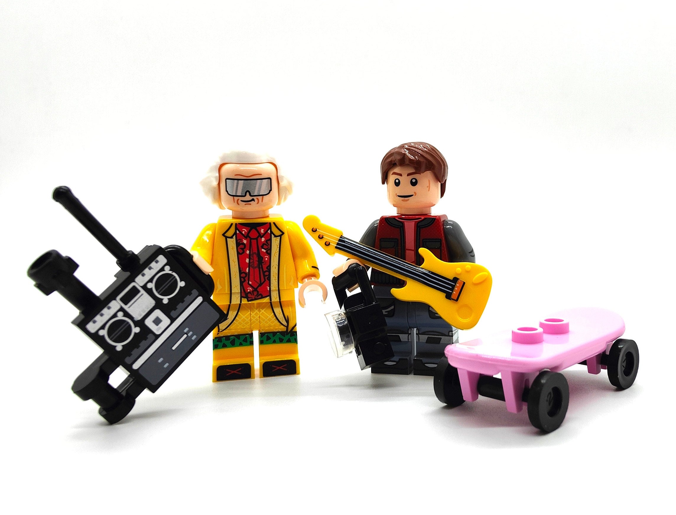 Marty McFly and Dr Brown from the hit 80s movie 'Back to the Future'! Accessories and black baseplat...