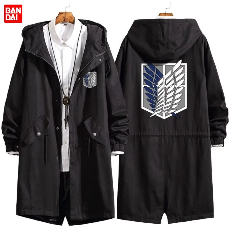 Attack On Titan 2D animation peripheral creative hooded long windbreaker jacket autumn and winter wi...