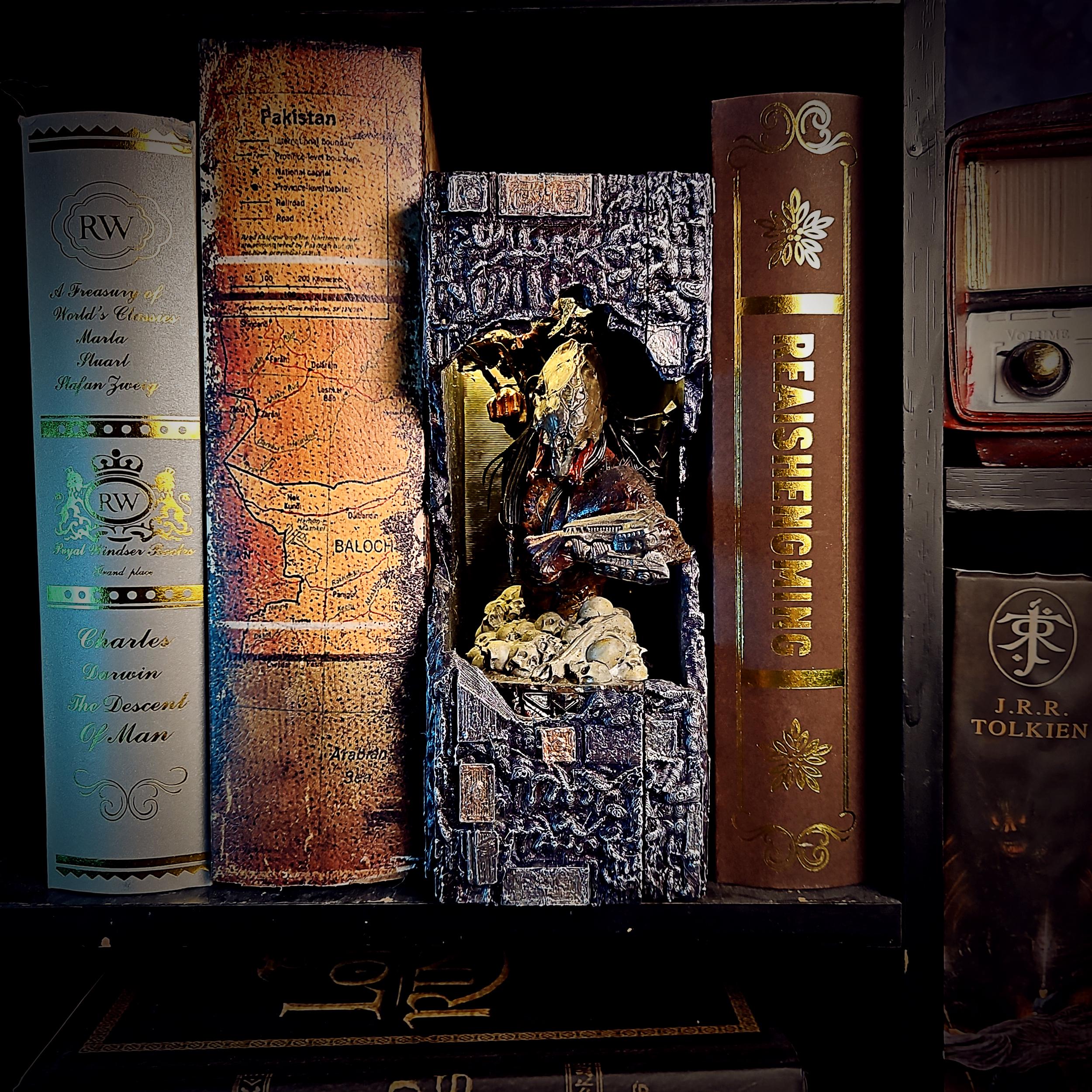 Feral Hunter Book Nook - Sci-Fi Jungle Predator Diorama with LED Li...