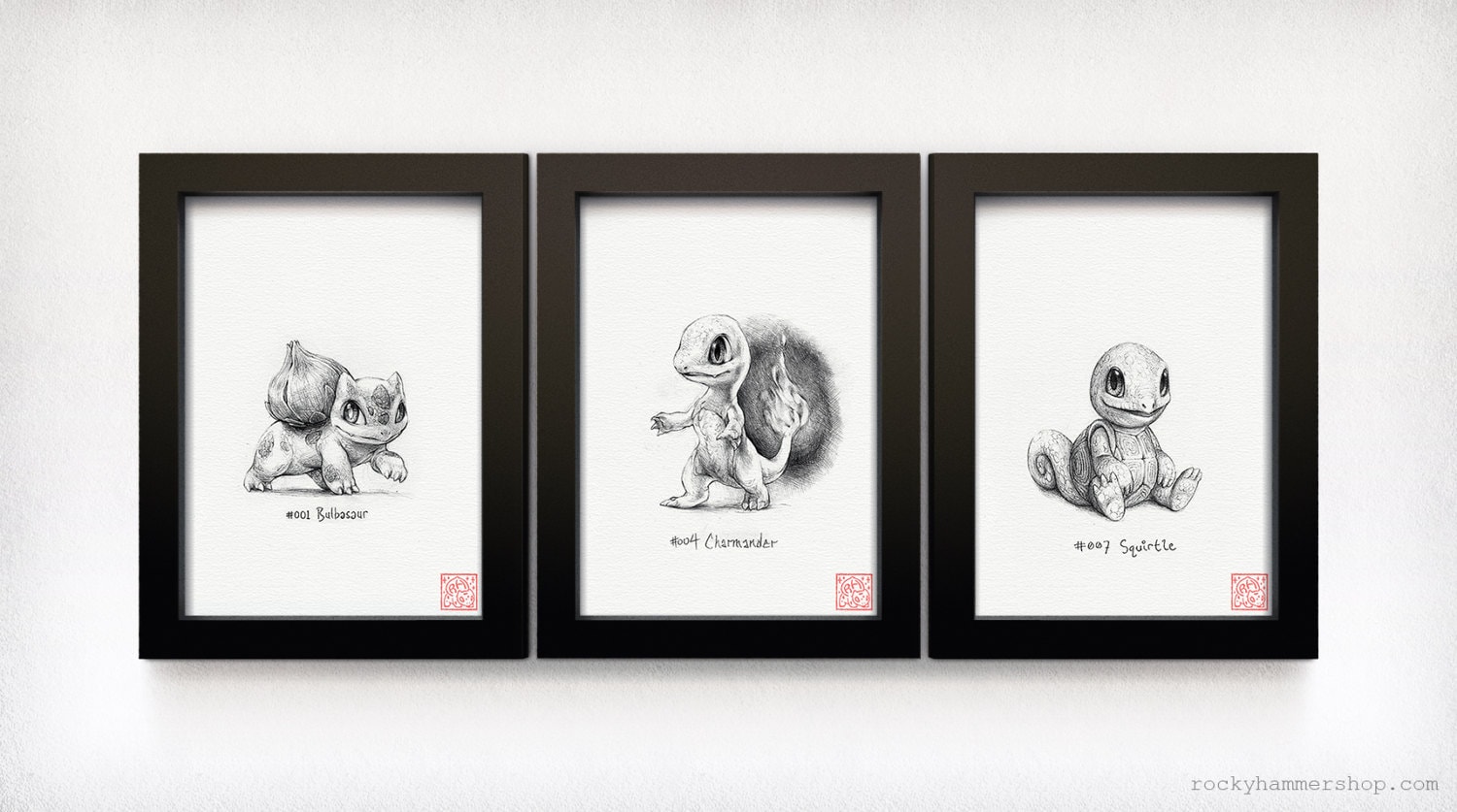 "Bulbasaur, Charmander and Squirtle - Kanto Gen 1 Pokemon star...