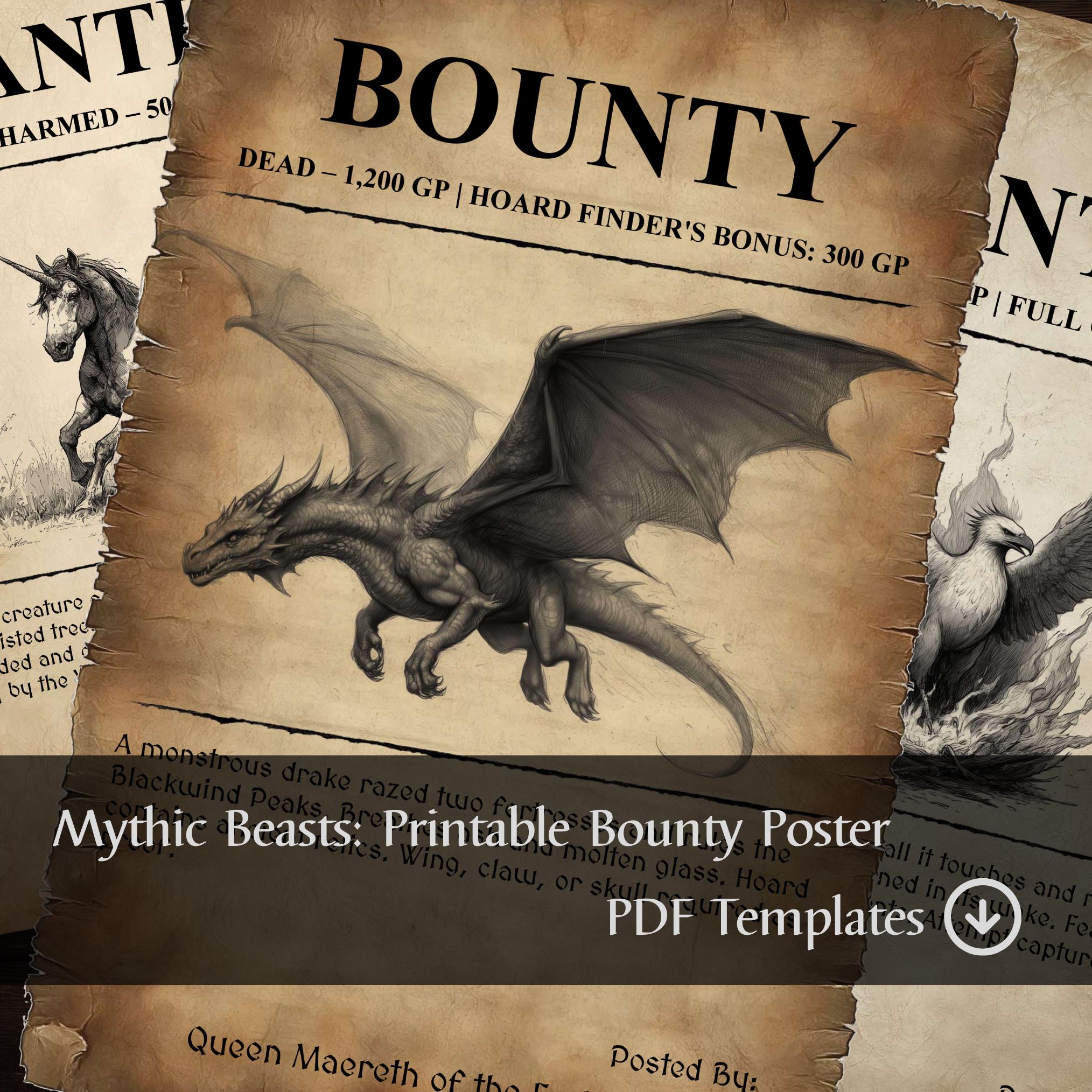 "Printable DnD Bounty Posters - \"Mythical Creatures\&quo...