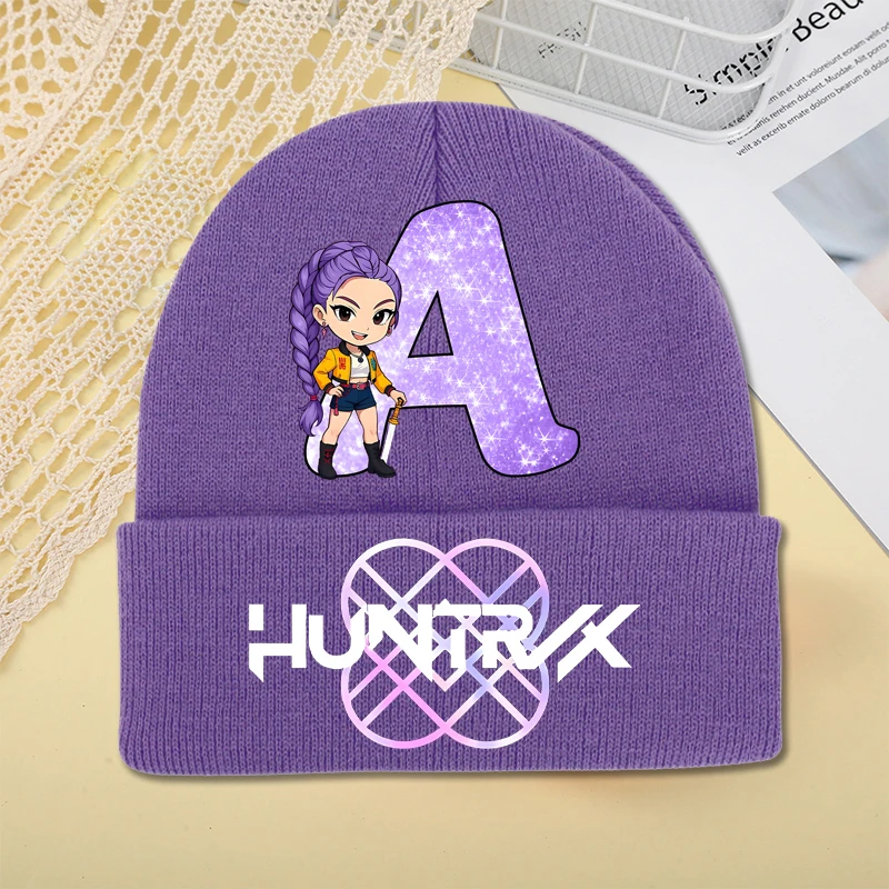 Move K-Pop Demon Hunters Knit Hat Letter A-Z Printed Kids Fashion Cartoon Warm Hats Purple Children ...