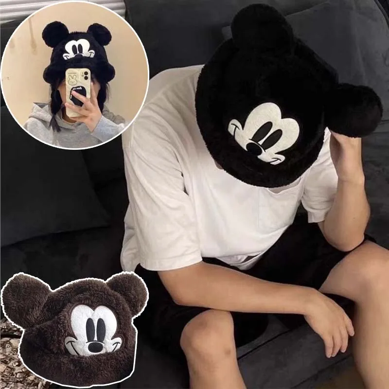 Disney Mickey Mouse Autumn and Winter Plush Warm Hat Fashion Simple Anime Acrylic Fiber Baotou Hat T...