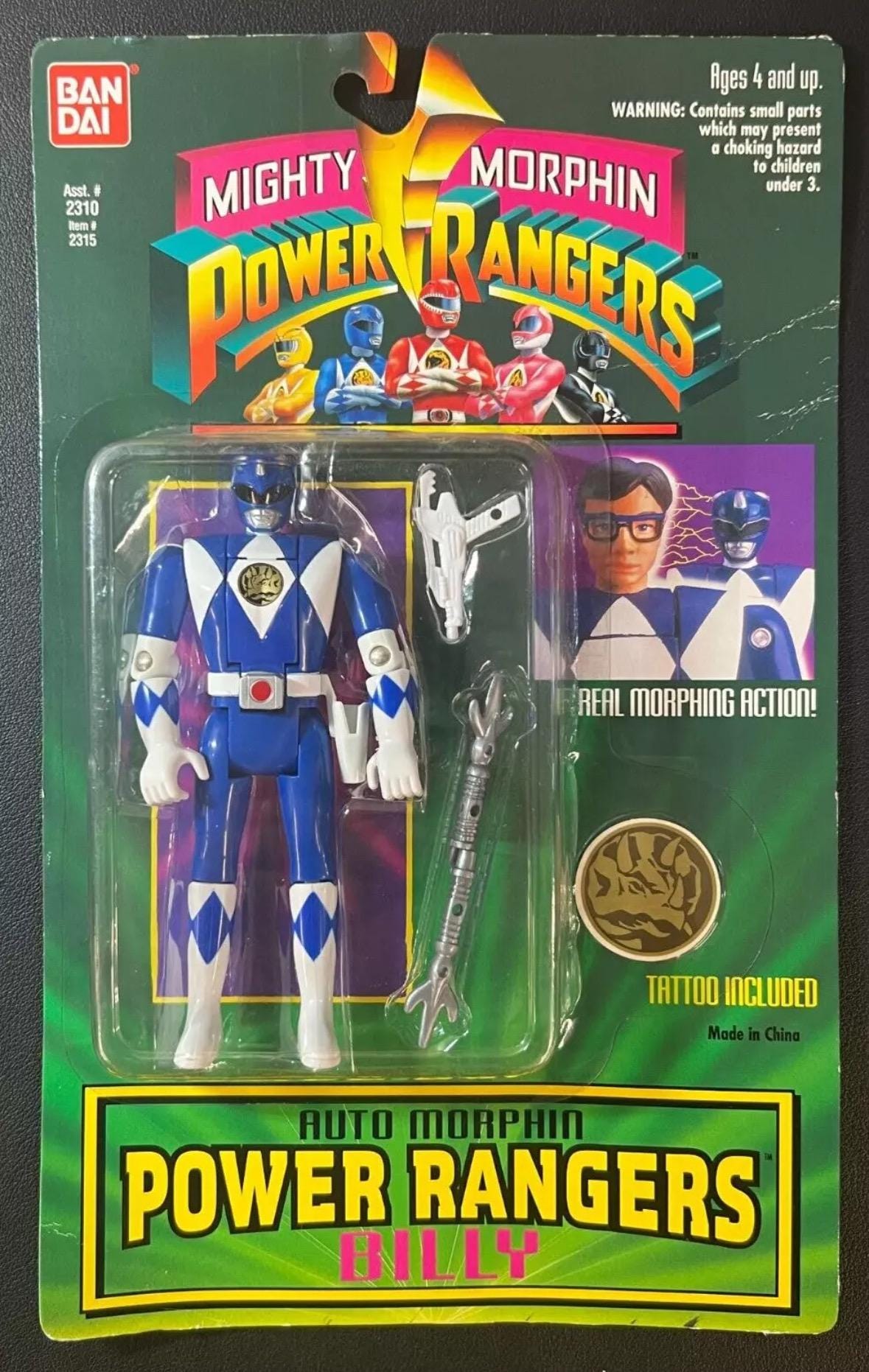 Vintage 1994 Bandai Mighty Morphin Power Rangers Ranger Blue Billy ...