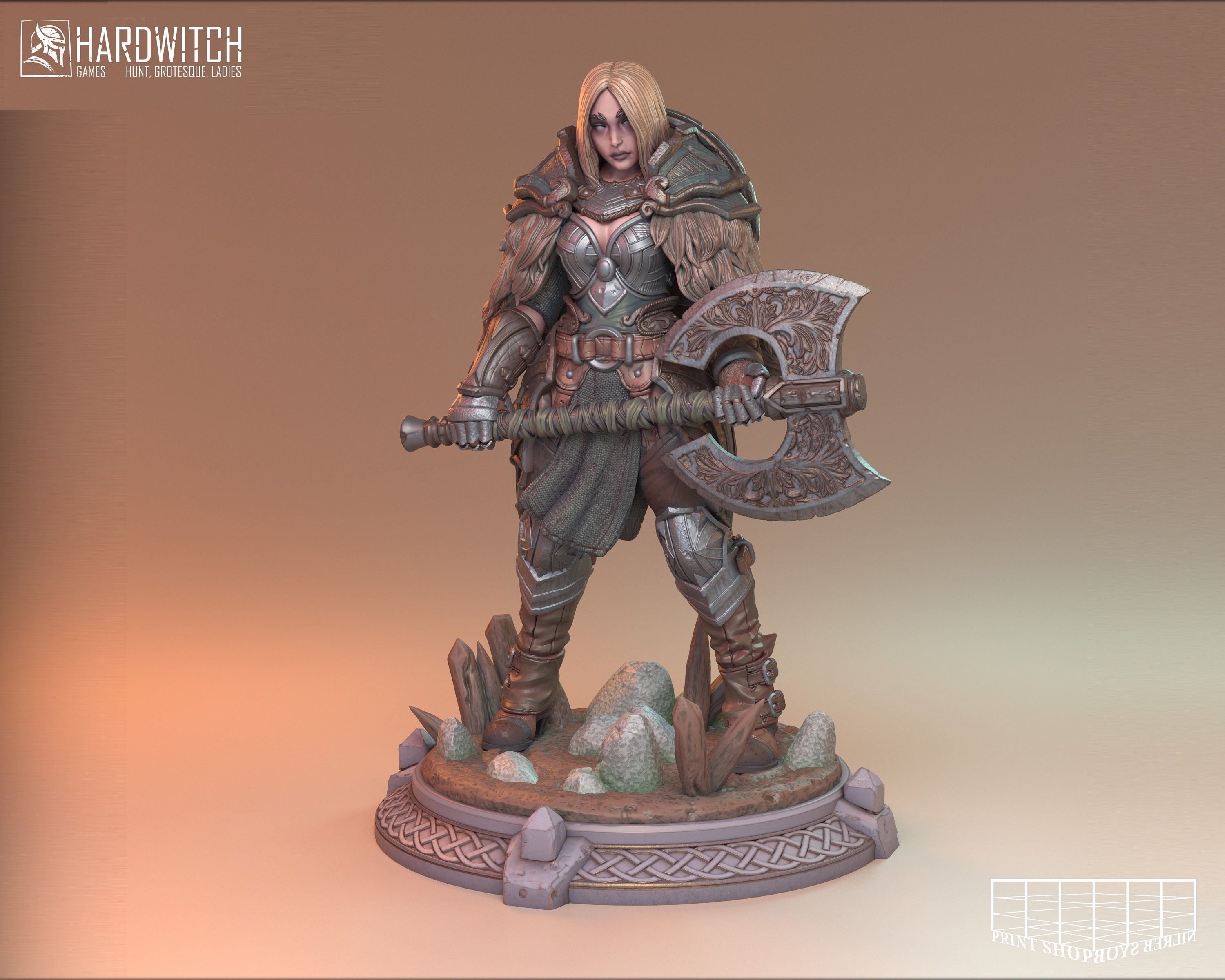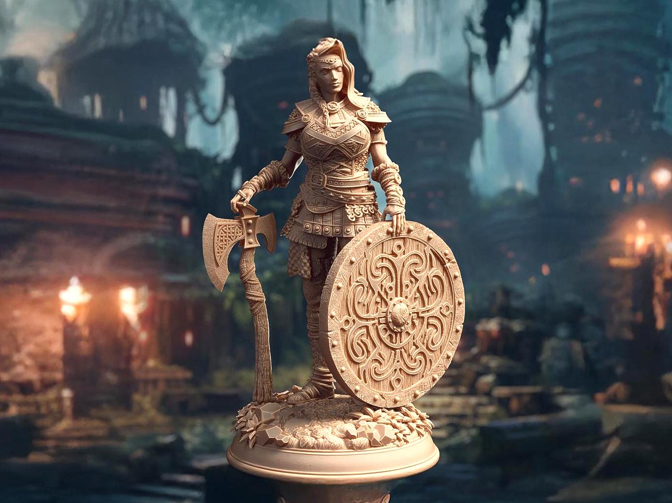 Feira Thurd Two-Handed Ax Fighter Miniature | Female Warrior Ax Fig...