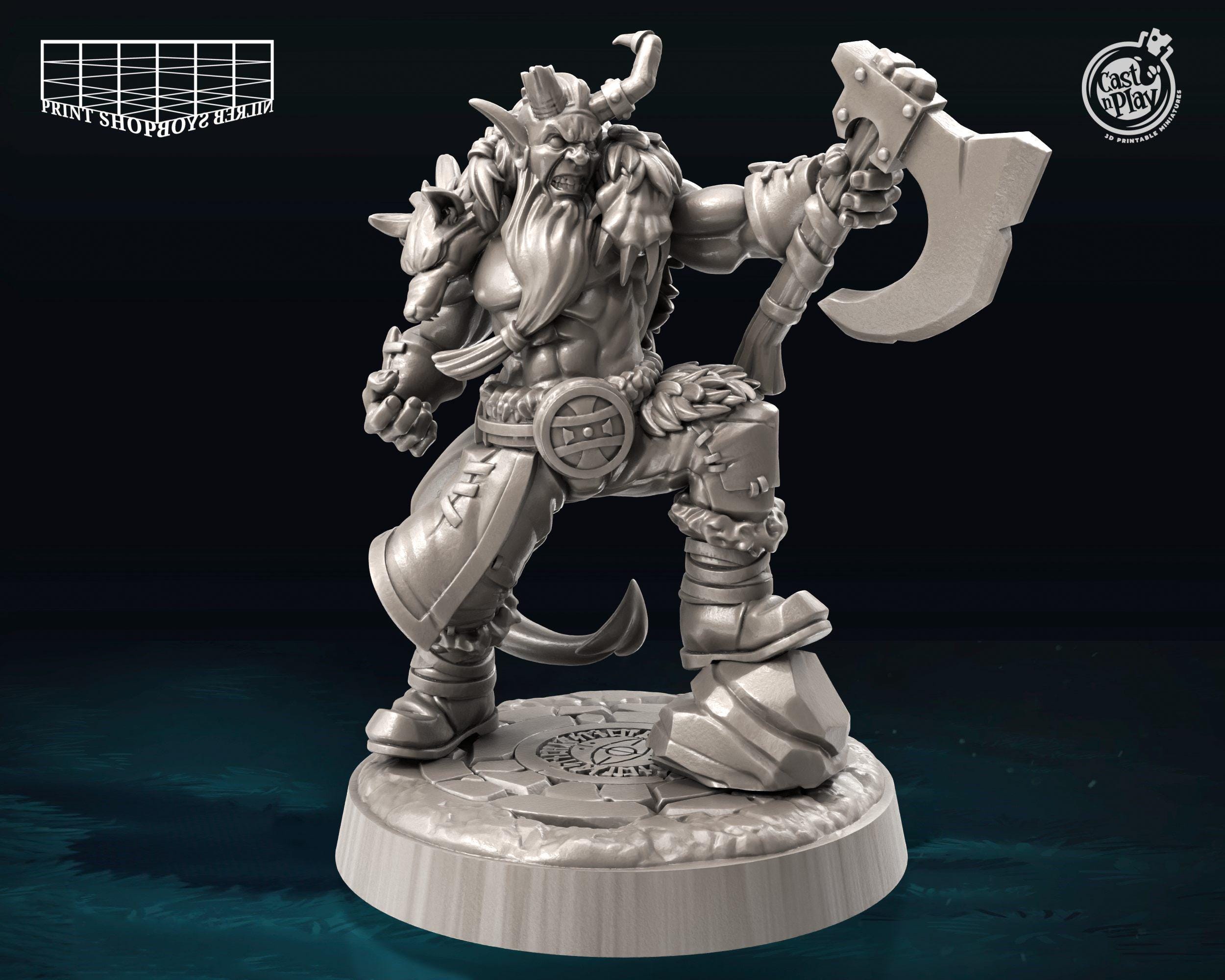 "This Tiefling Barbarian with long axe miniature was sculpted for tabletop role-playing games s...