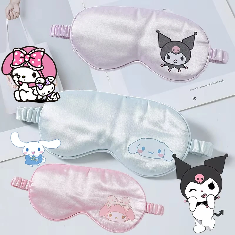 Sanrio Kuromi Sleep Eye Mask Travel Relax Eyepatch Double-sided Simulation Silk Blackout Soft Blindf...