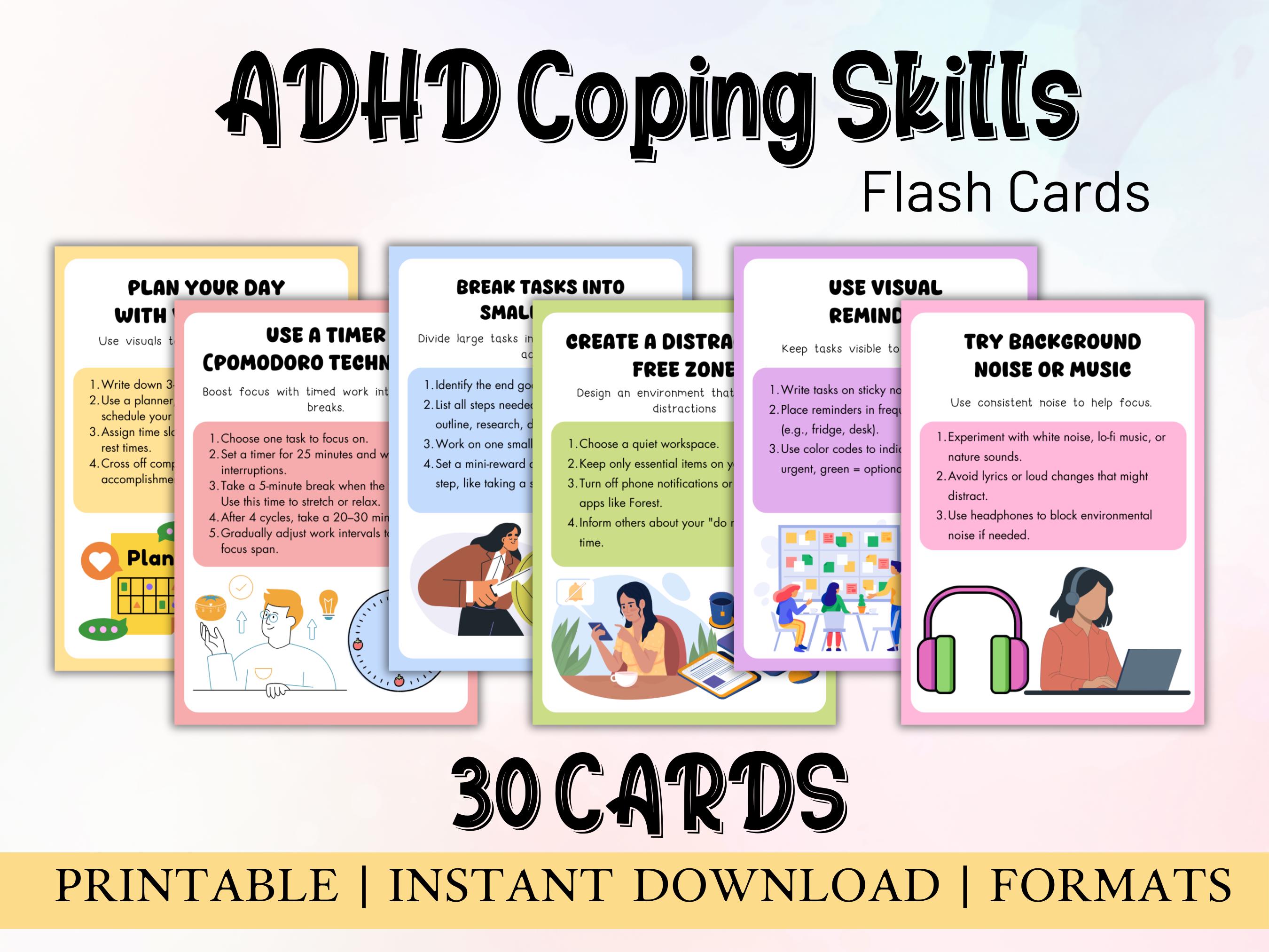 "ADHD Coping Skills Cards - Visual Tools for Teens & Adults Take control of your focus and ...