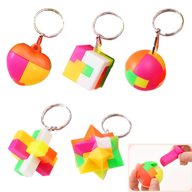 10pcs/bag Geometric Puzzle Toys Educational Assembling Keychains Ki...