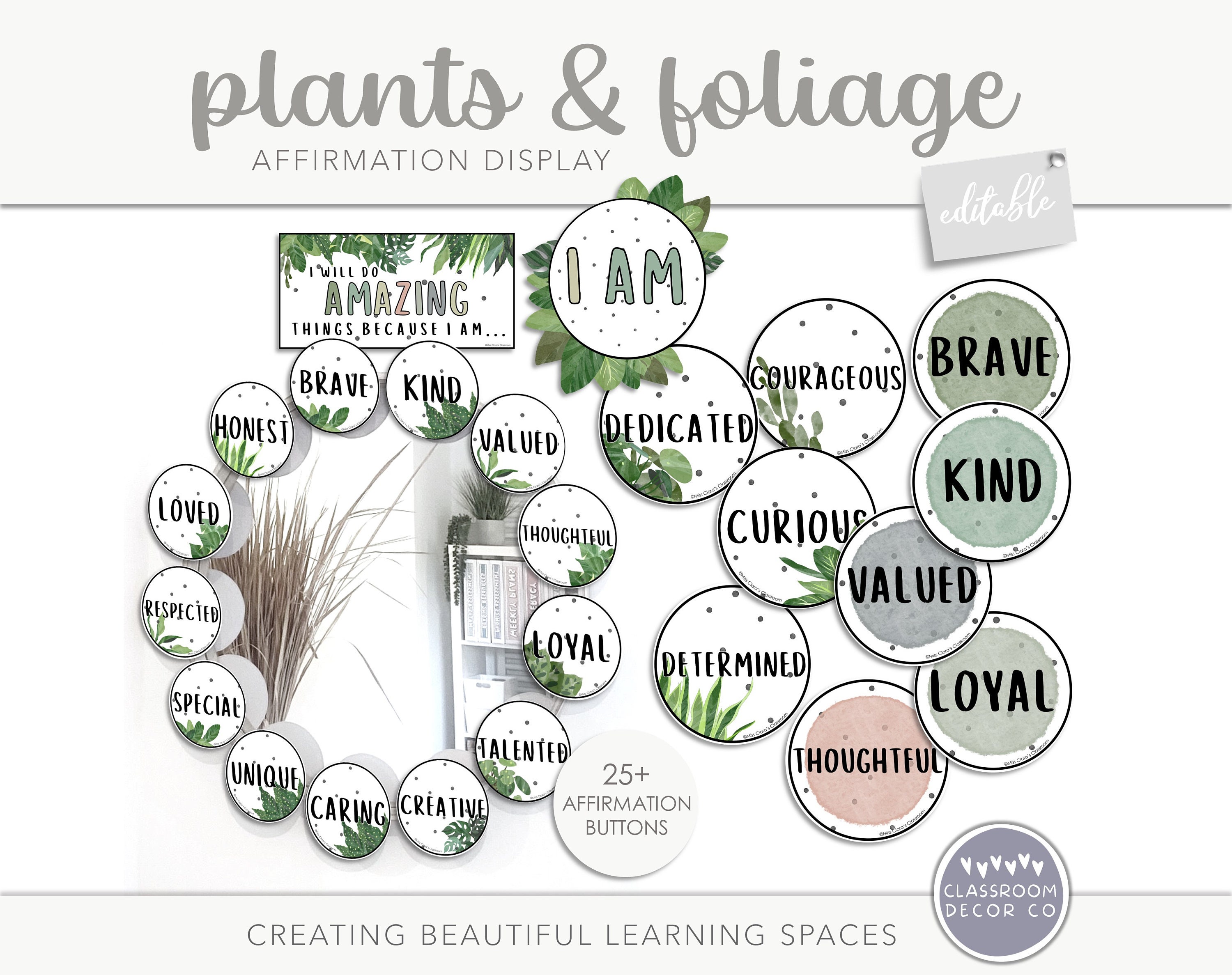 PLANTS & FOLIAGE Affirmation Display, Self Esteem Classroom Dis...