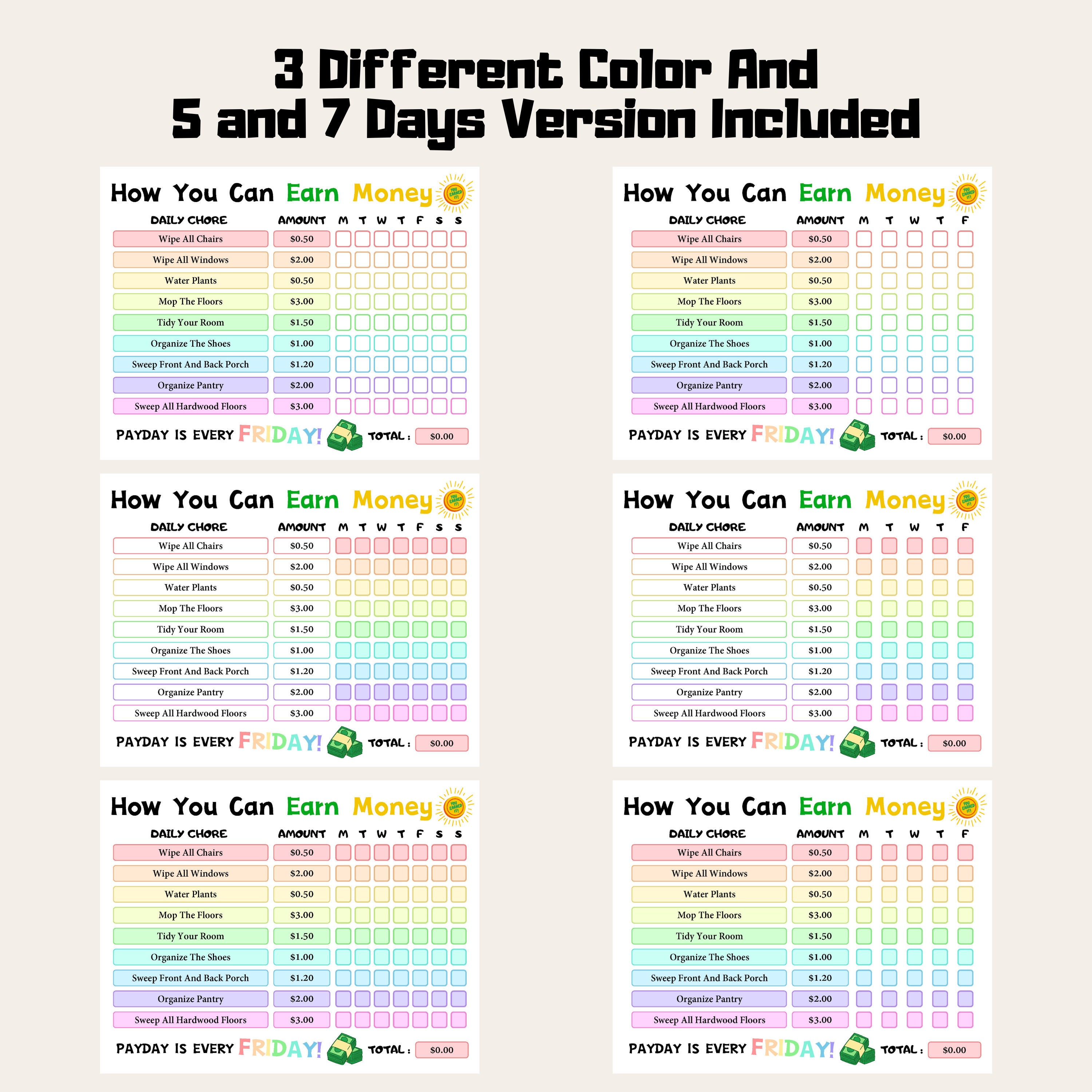 "How to earn money weekly chore chart is printable & reusable PDF and instant digital downl...