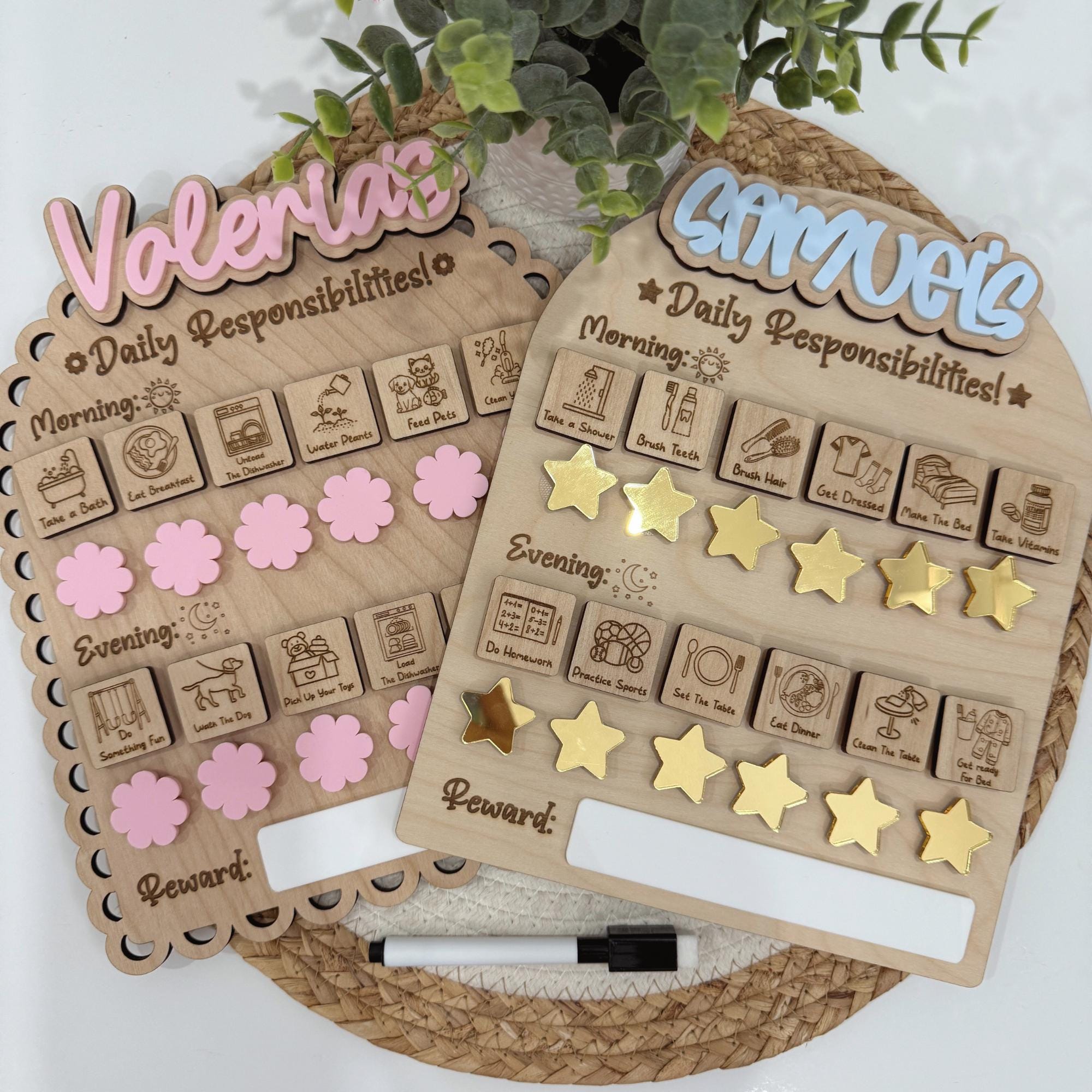 Daily Chore Reward Chart For kids, Personalized Chore Chart, Wooden...