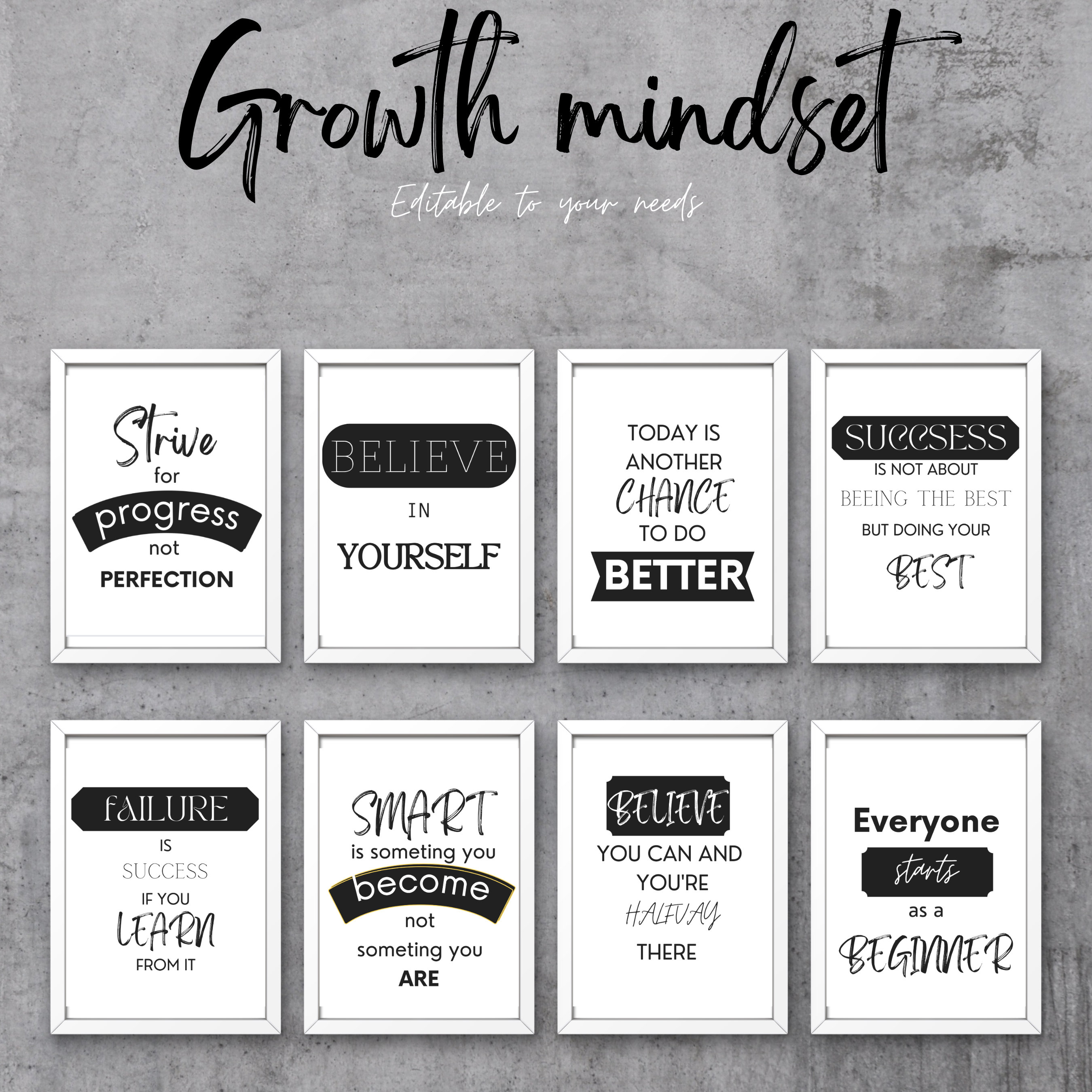 Growth mindset classroom posters, simple black and white or create ...