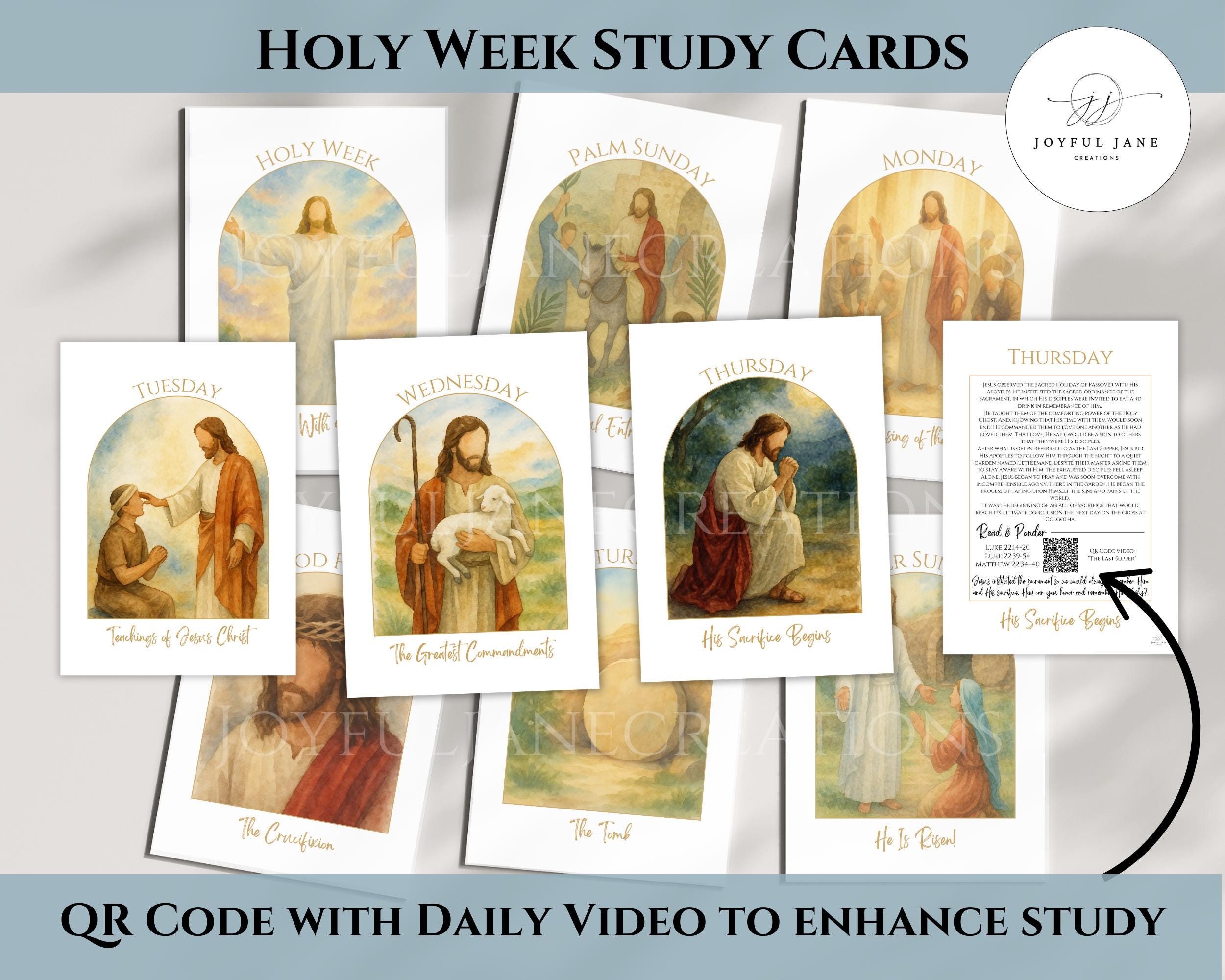 Holy Week Study Cards - 8 cards with illustrations and reflective questions for each day of Holy Wee...