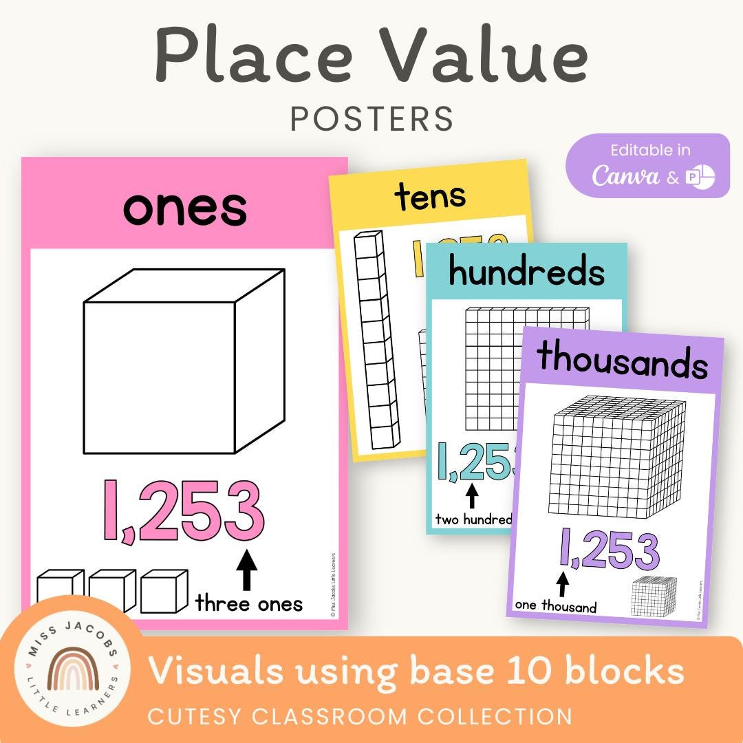 Cutesy Place Value Posters, Printable Place Value Chart, Math Bulle...