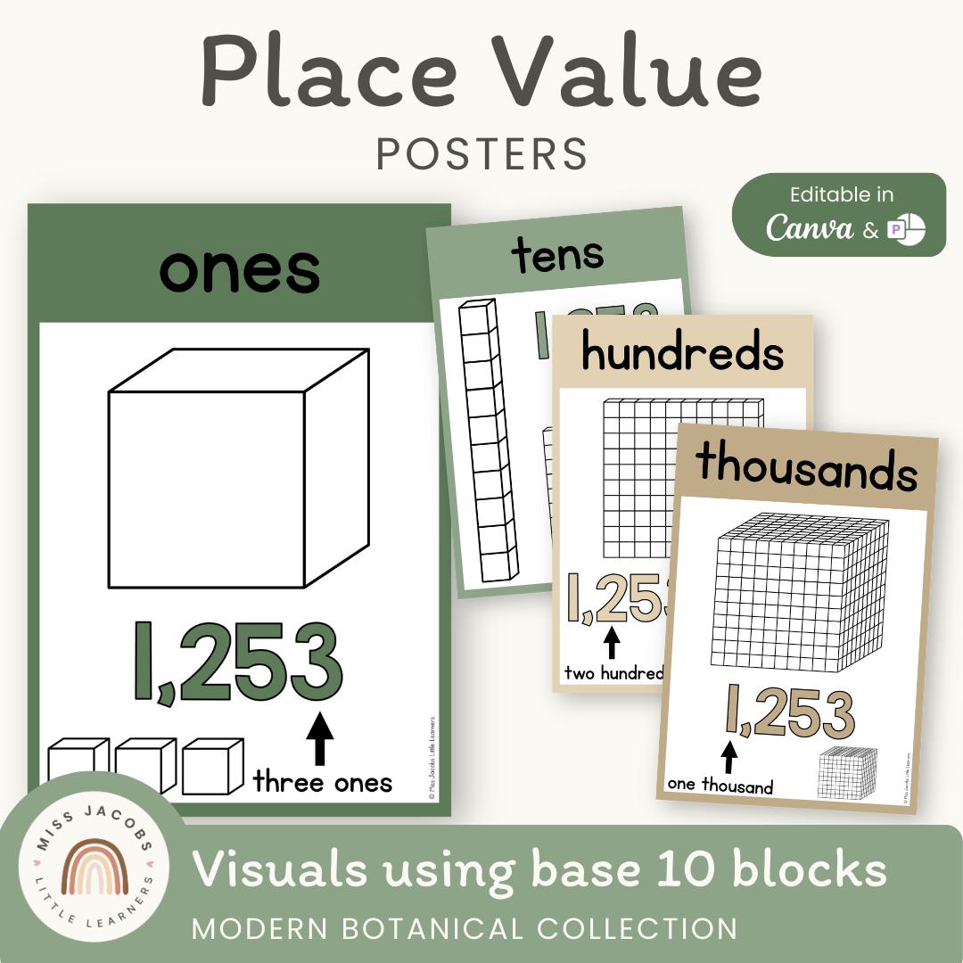 Place Value Posters Modern Botanical Theme, Printable Place Value C...