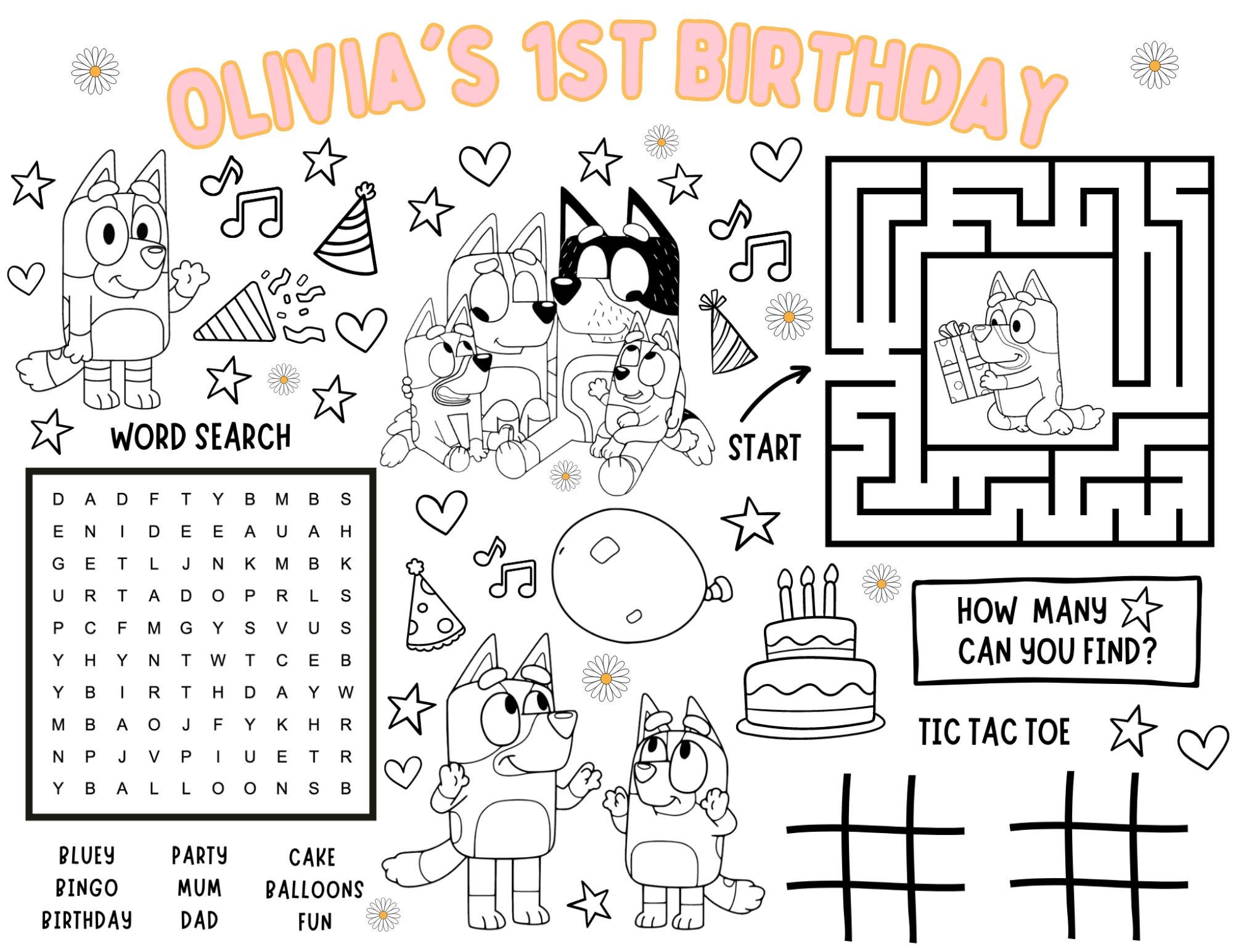 Blue dog activity placemat, Personalised activity placemat, kids ac...