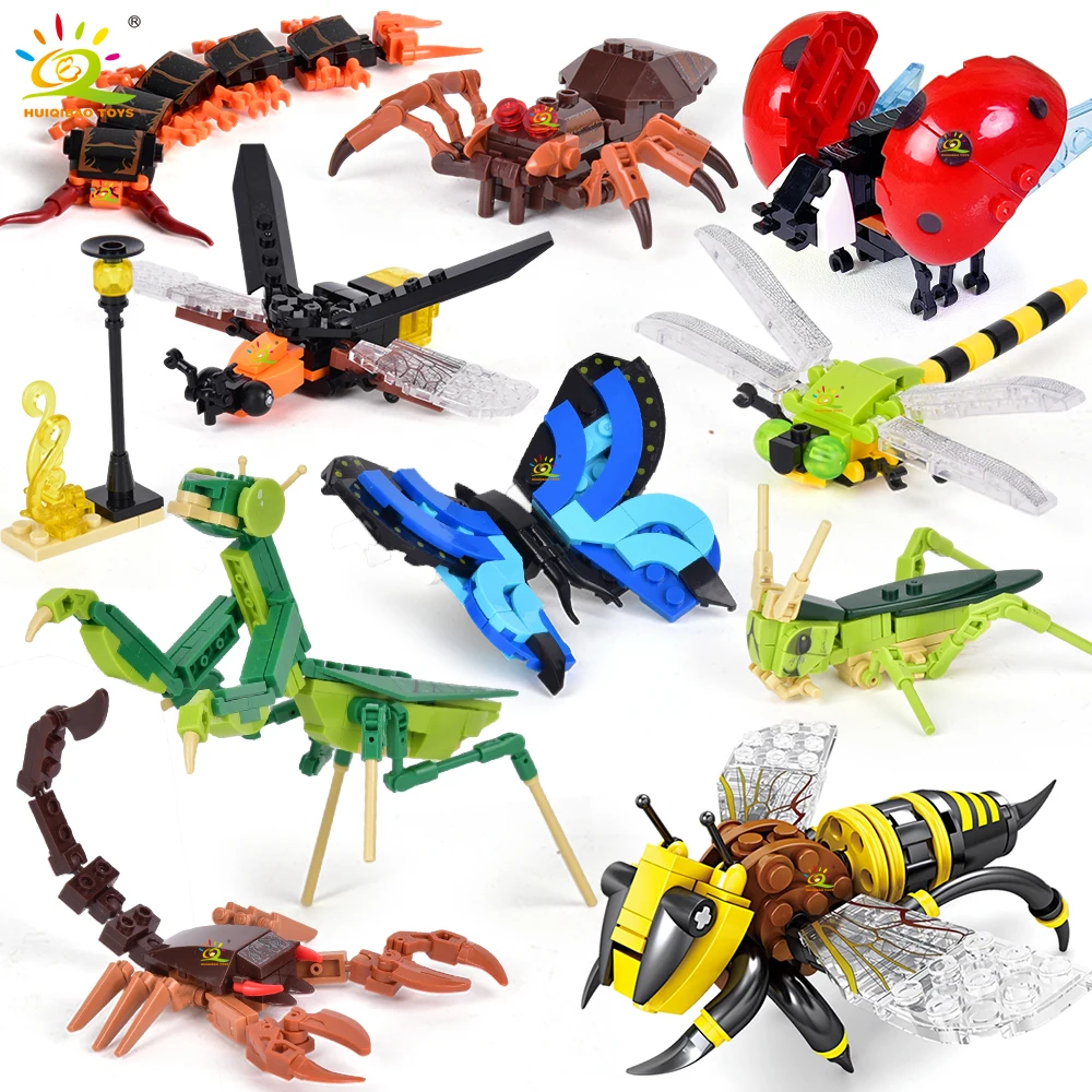 HUIQIBAO Creative Moc Insect Building Blocks Bee Dragonfly Ant Mant...