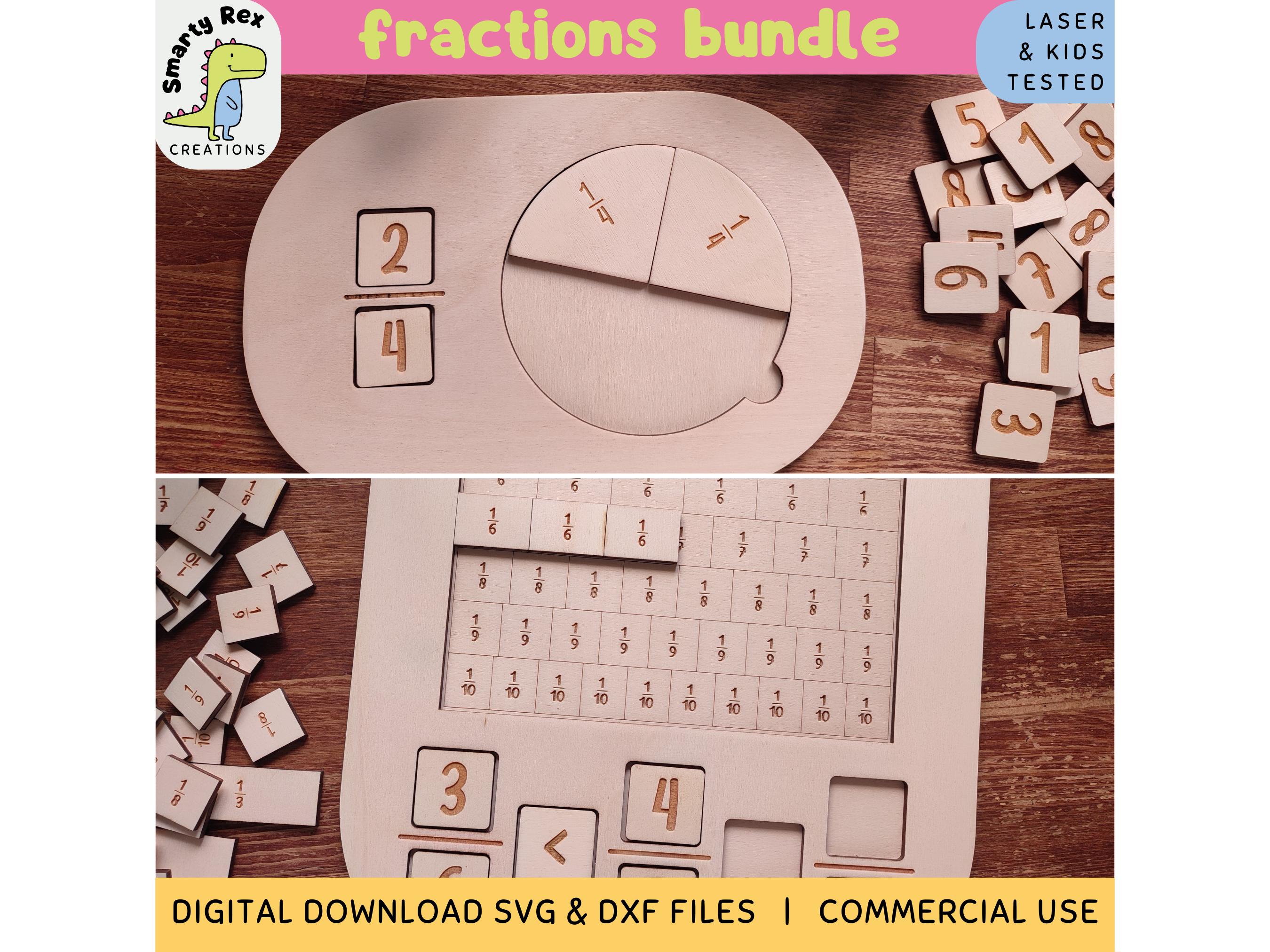 Fraction Learning Circles Laser Files, Fraction Strips SVG DXF, Mon...