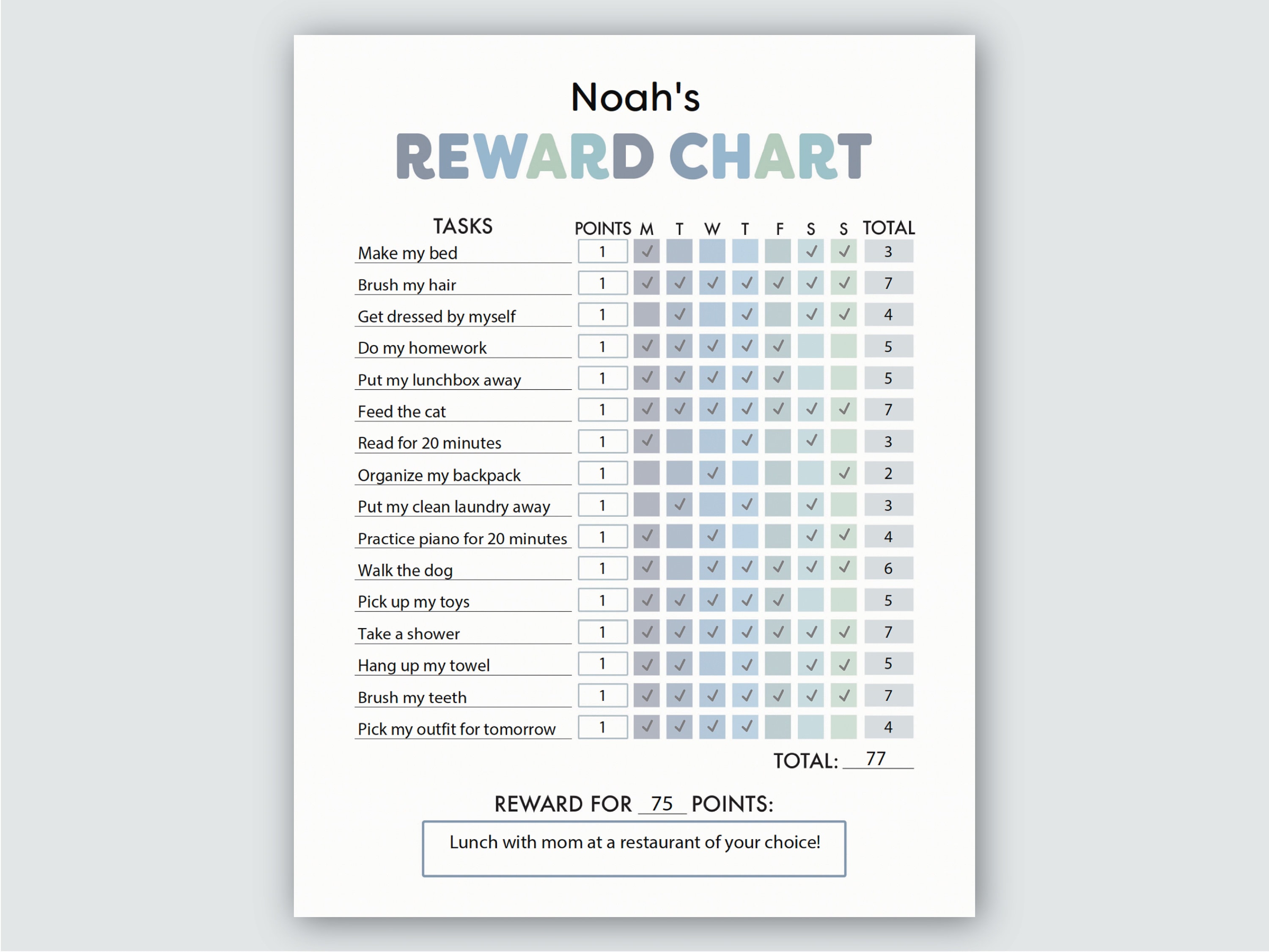 Reward Chart, Toddler Reward Chart, Reward Chart Printable, Kid Rou...