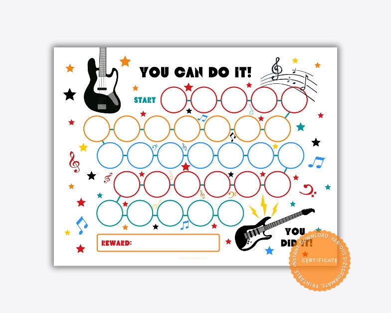 Electric Guitar Reward Chart Printable, Music Reward Chart, Music P...