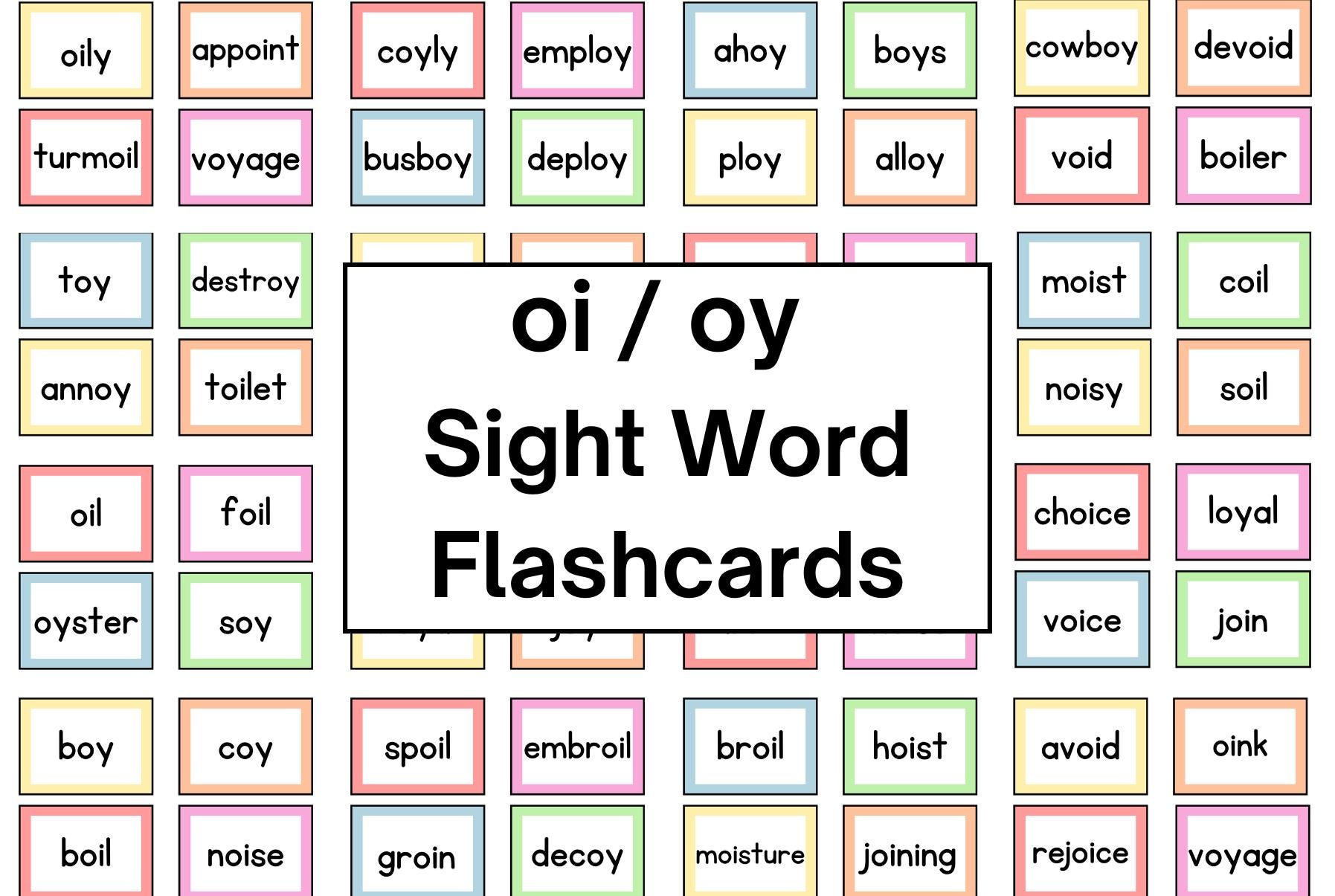oi oy Sight Word Flashcards | Speech therapy flashcards grades K-4 ...