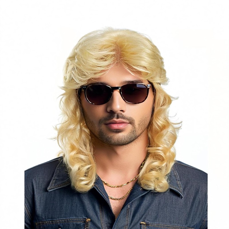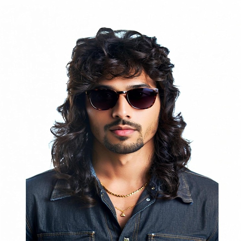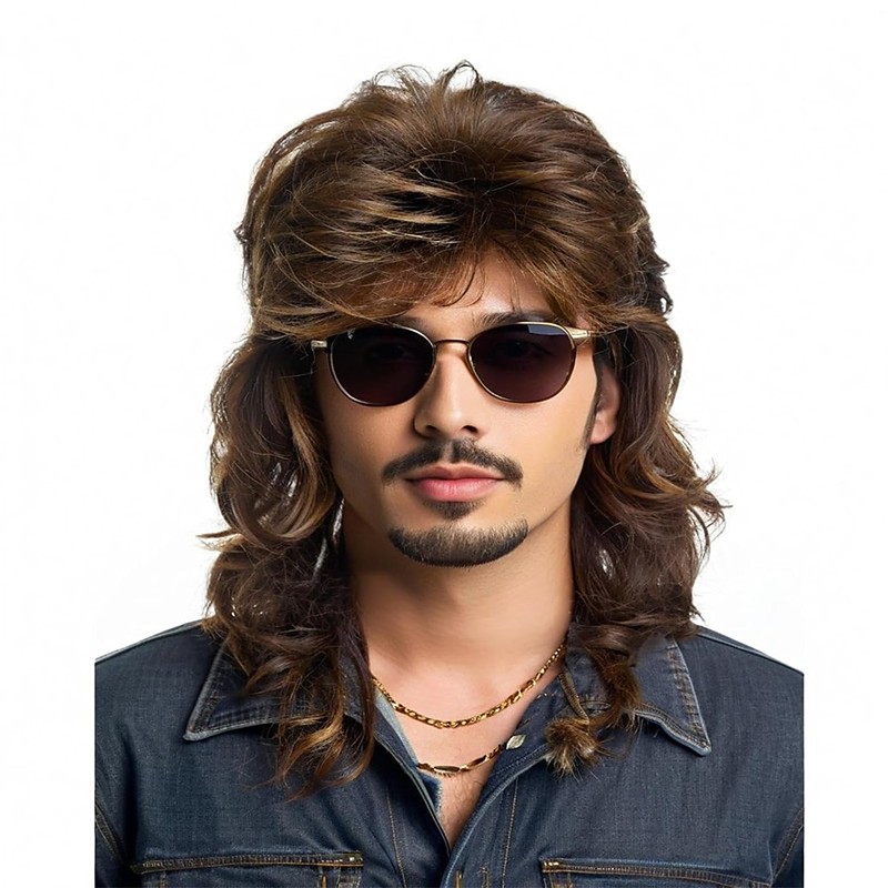70s Style Retro Mullet Wig 80s Style Costume Long Wavy Brown Hair w...