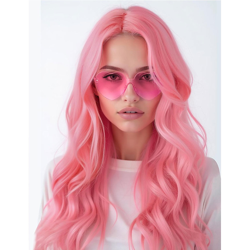 23.62 Inch Long Wavy Wig Middle Part for Women and Party Sunglasses...