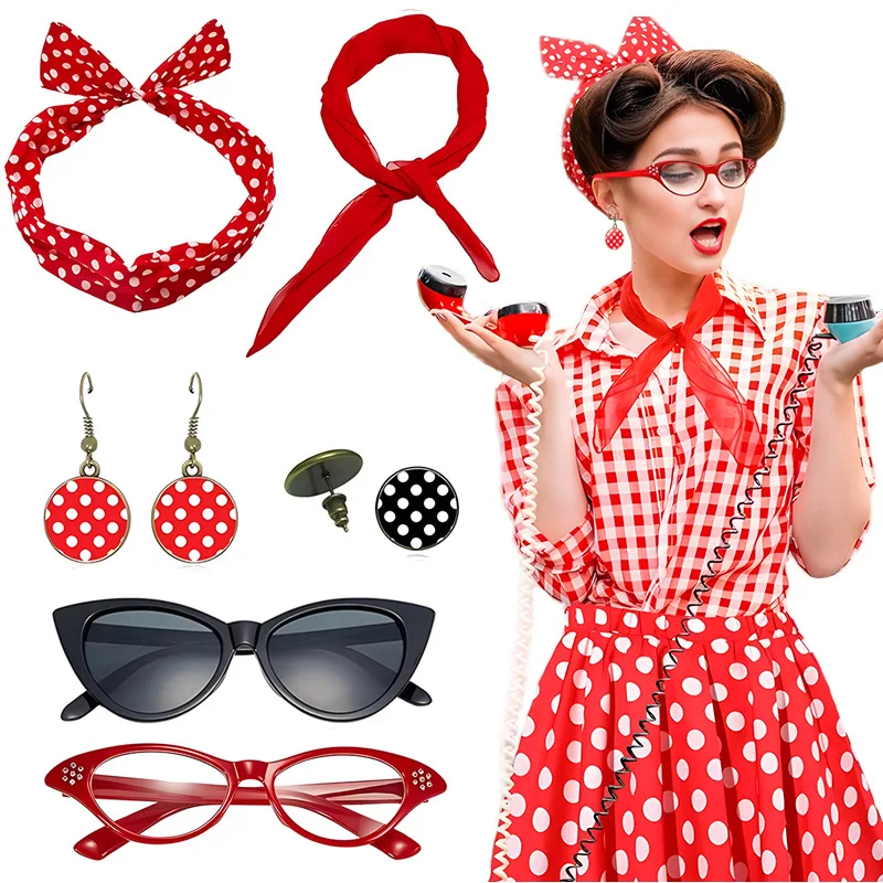 1950s Costume Accessories Women 50s Scarf Polka Dot Headband Earrin...