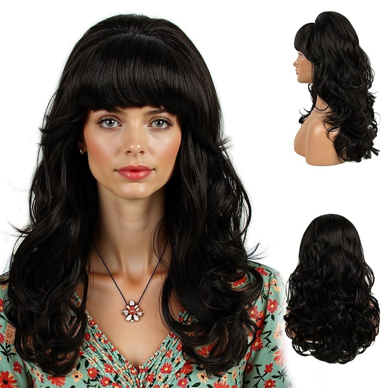 Women Wigs Black Beehive Wigs Bouffant Wig Long Wavy Carnival 60s 7...
