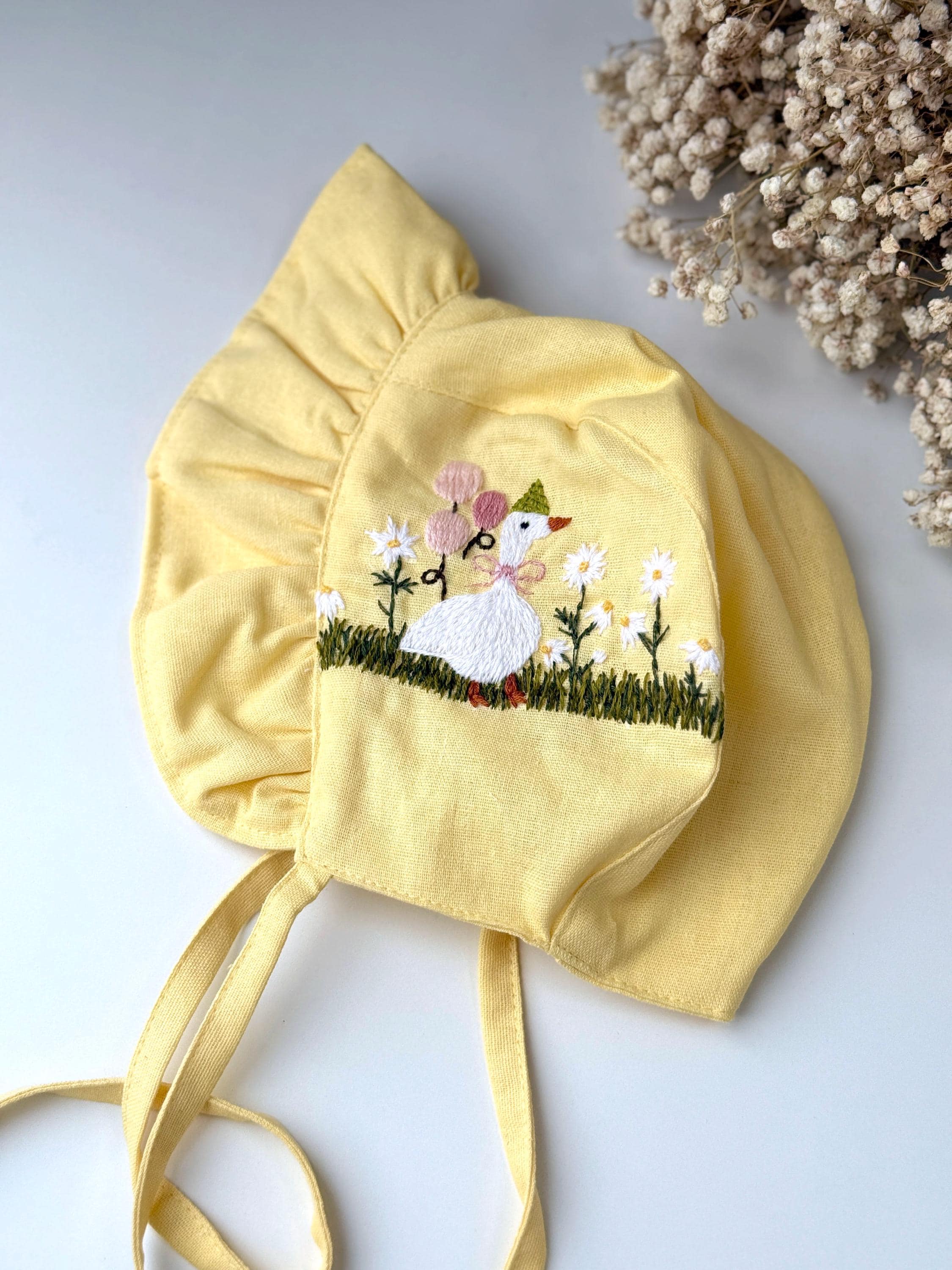 Custom Birthday Goose in Daisy Garden Baby Sun Bonnet, Baby Linen B...