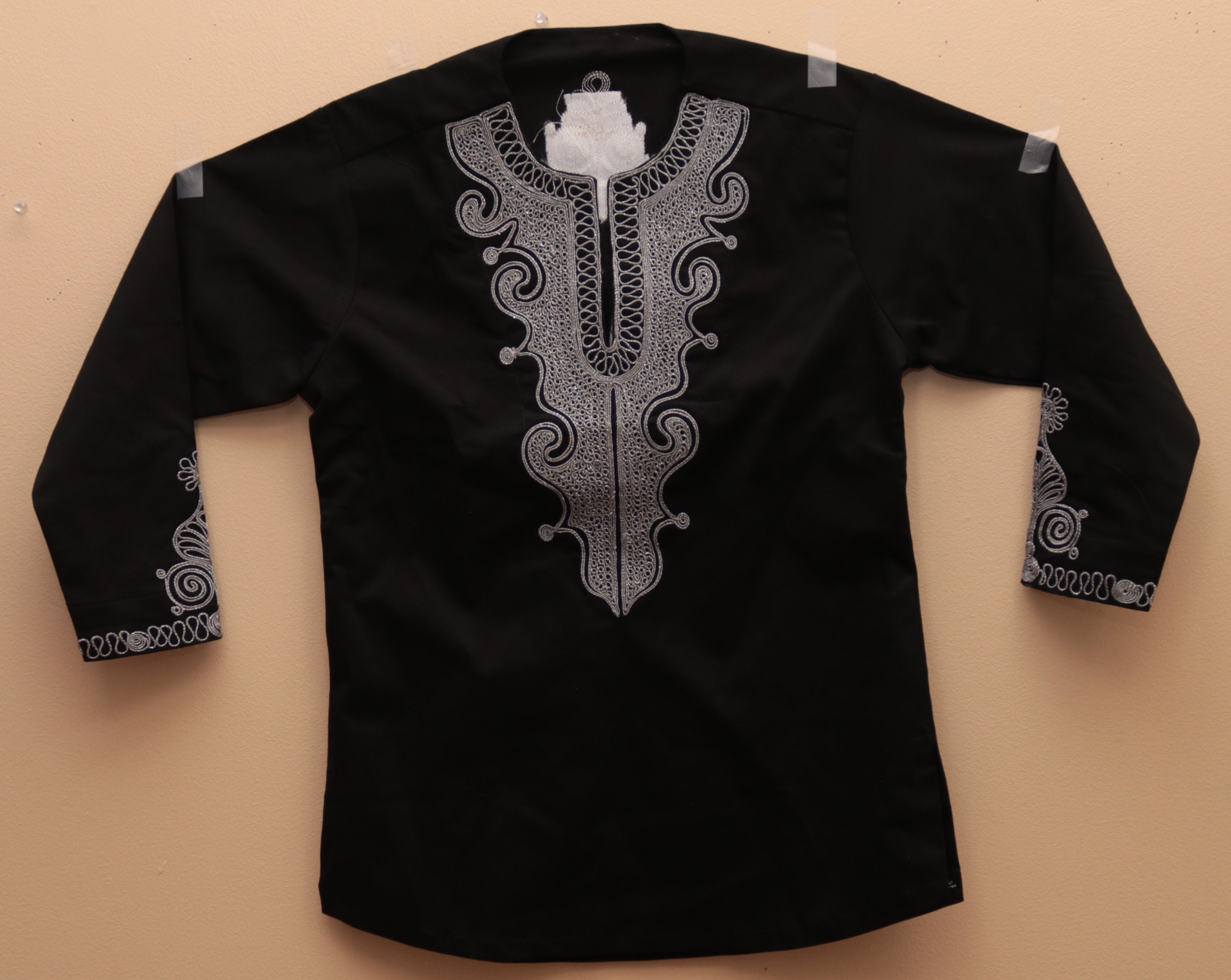 Black and grey embroidered tunic shirt Long sleeve length Color: Black with grey embroidery We accep...