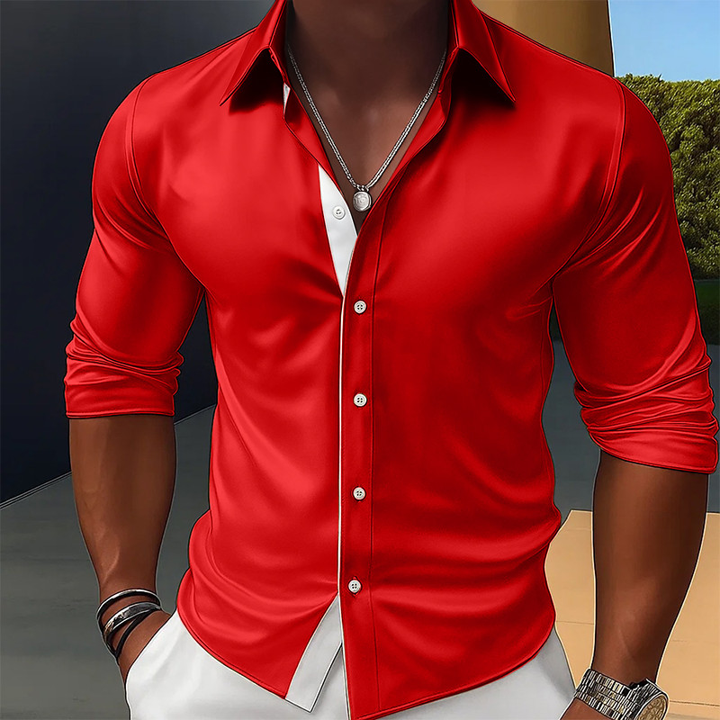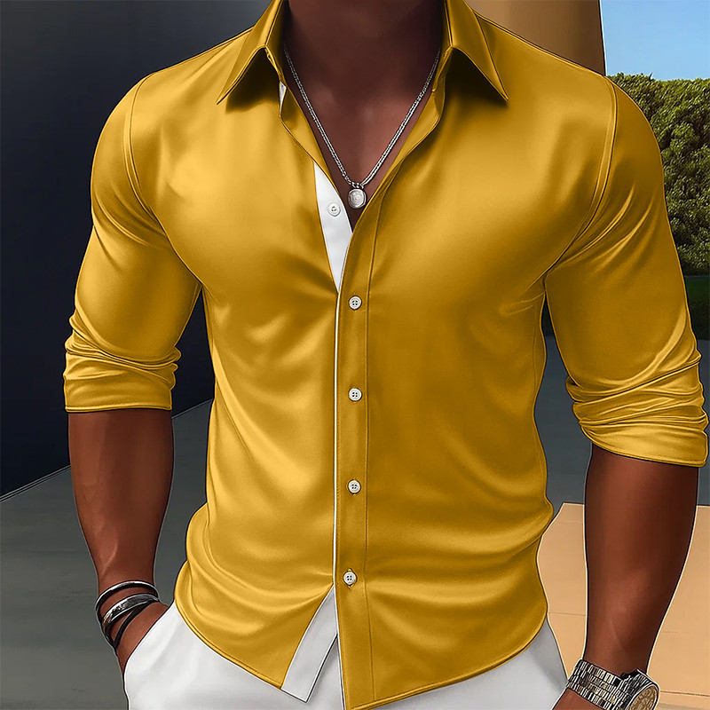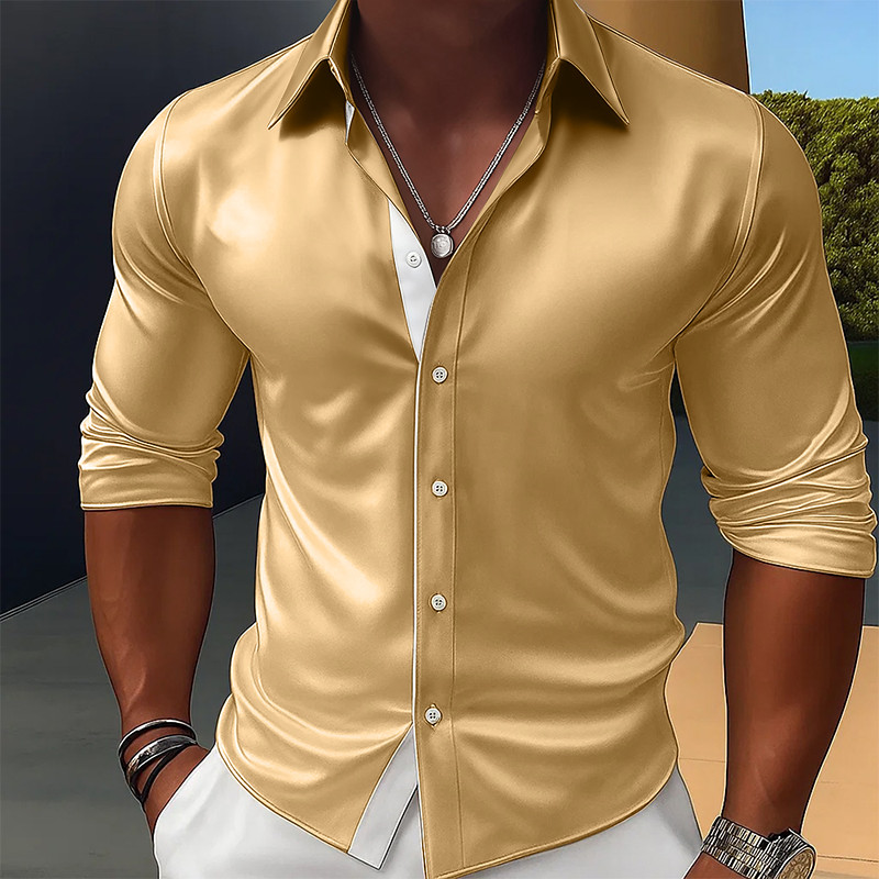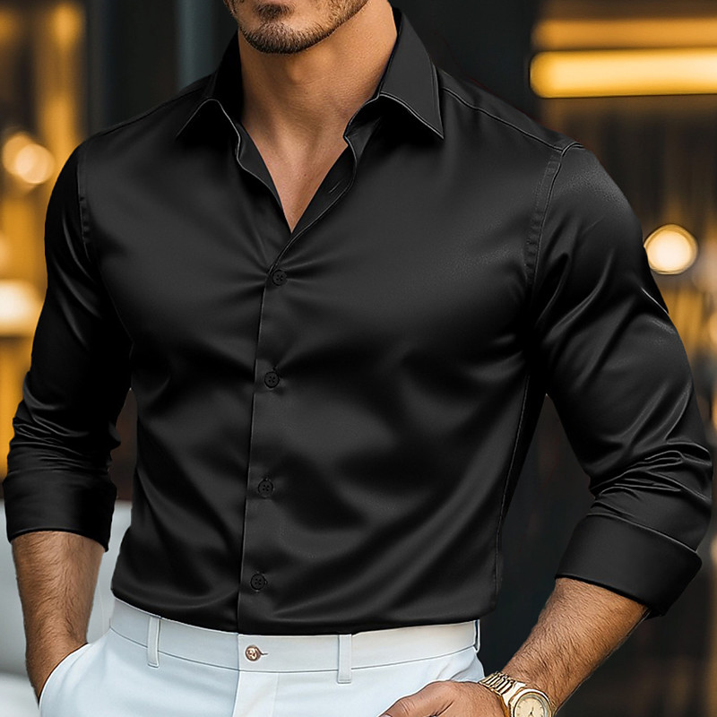• Men's Shirt Satin Shirt Dress Shirt Casual Shirt Button Up Shirt Pr...