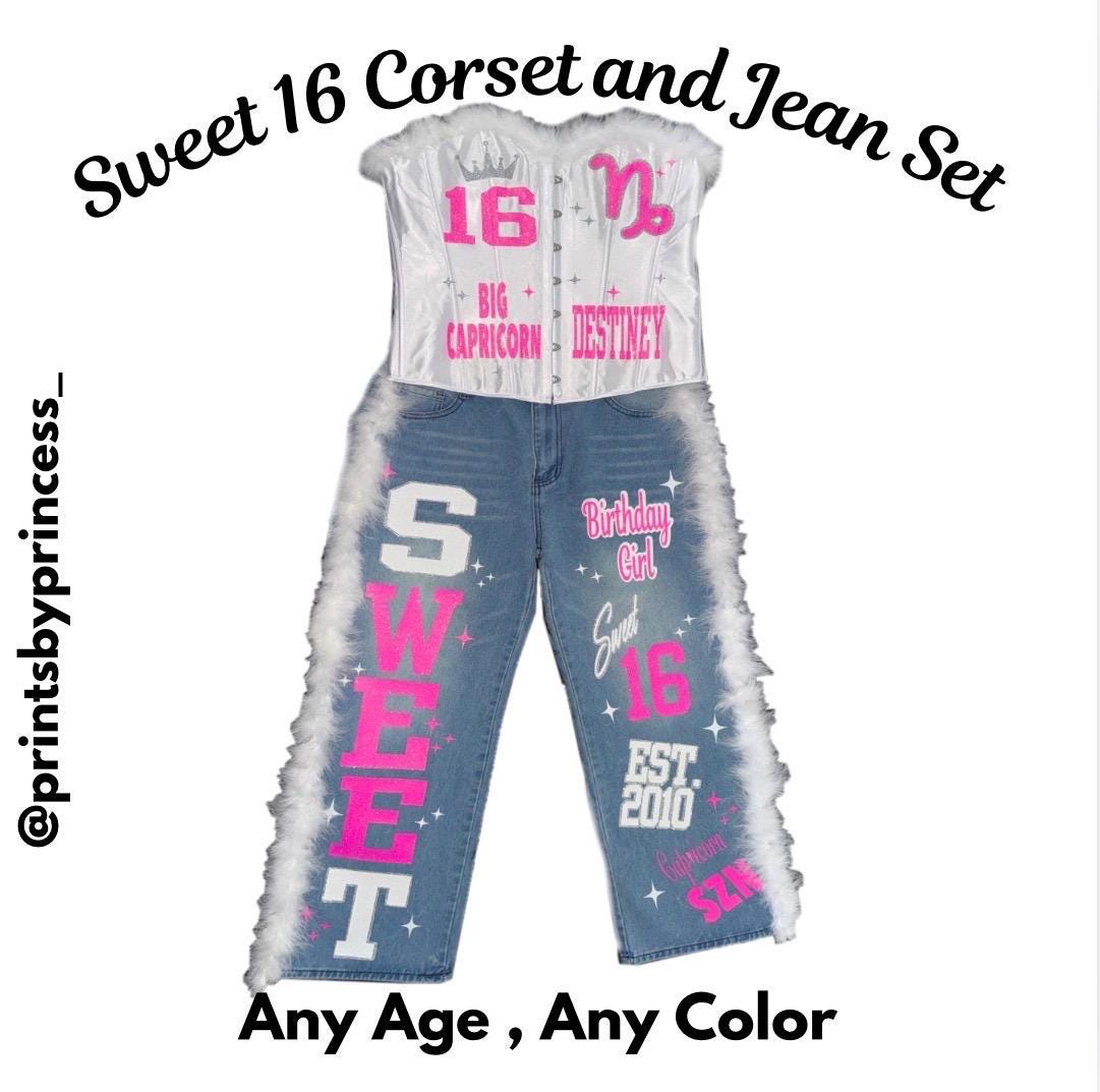 "Sweet 16 Corset & Jean Outfit - Custom Made for Any Age! I provide everything -- your outf...