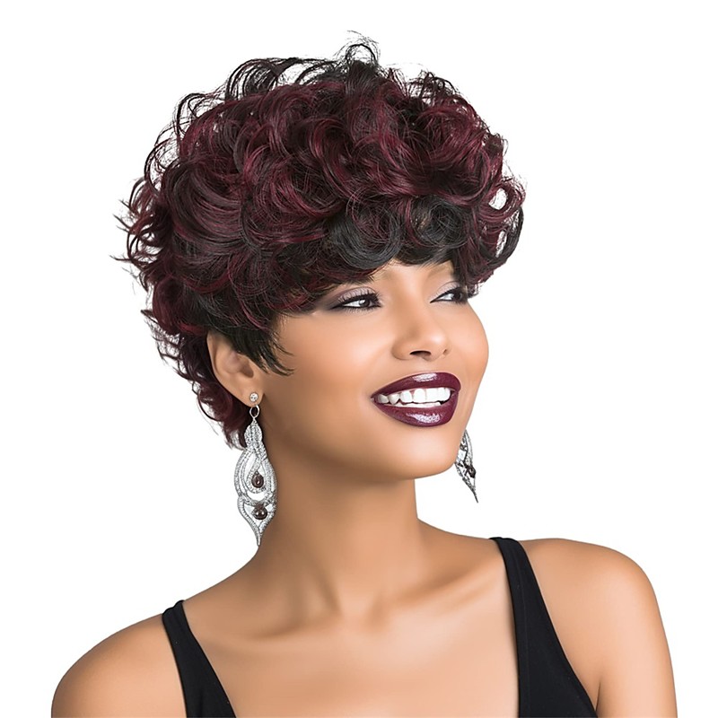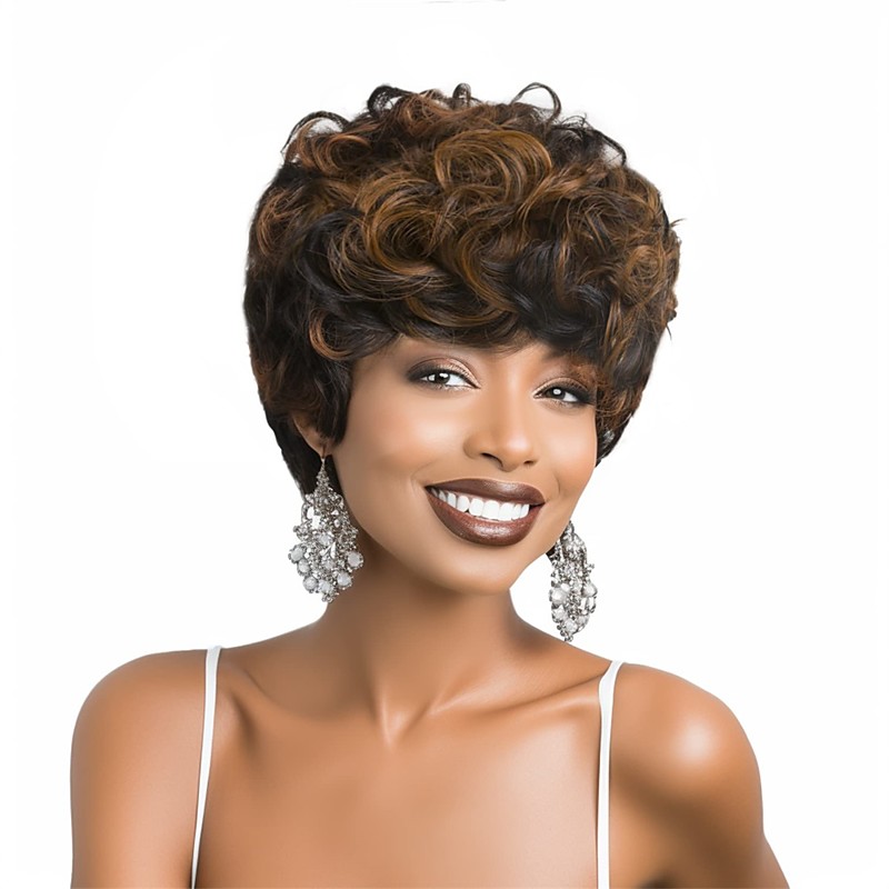 Pixie Cut Straight Wig Short Cut Black Mixed Brown Straight for Bla...