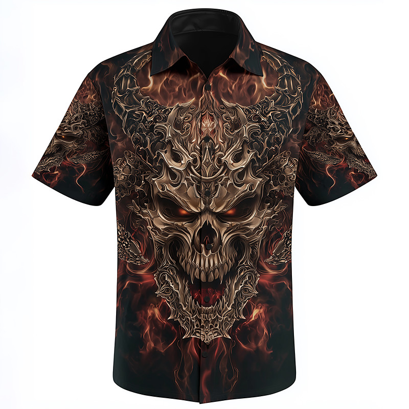 Men's Flame Costumes Skulls Shirt Summer Shirt Button Up Shirt Shor...
