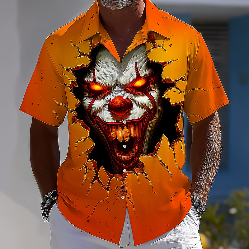 Men's Creepy Clown Devil Clown Shirt Summer Shirt Button Up Shirt S...