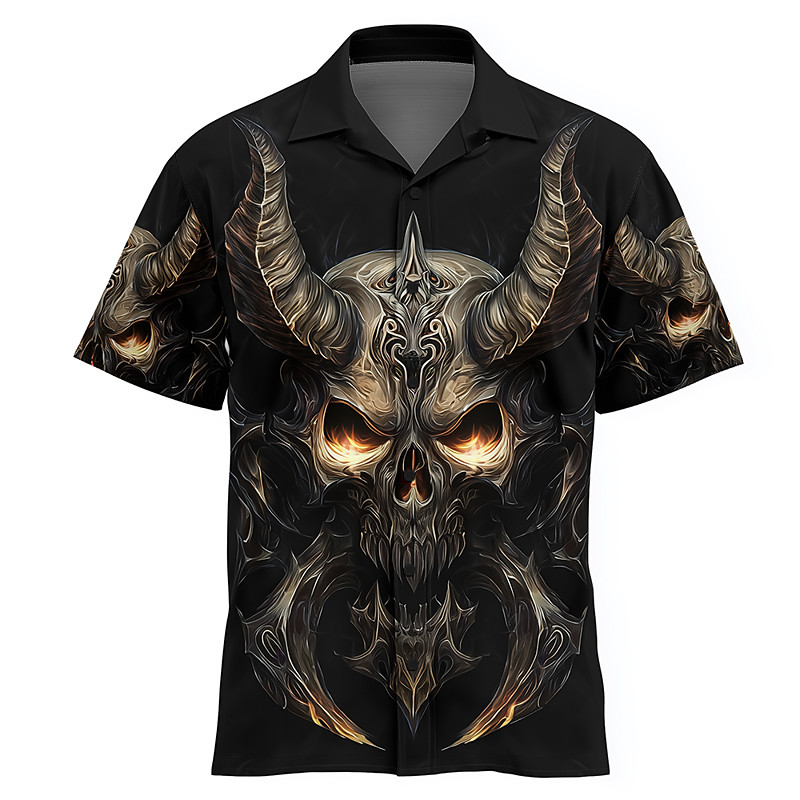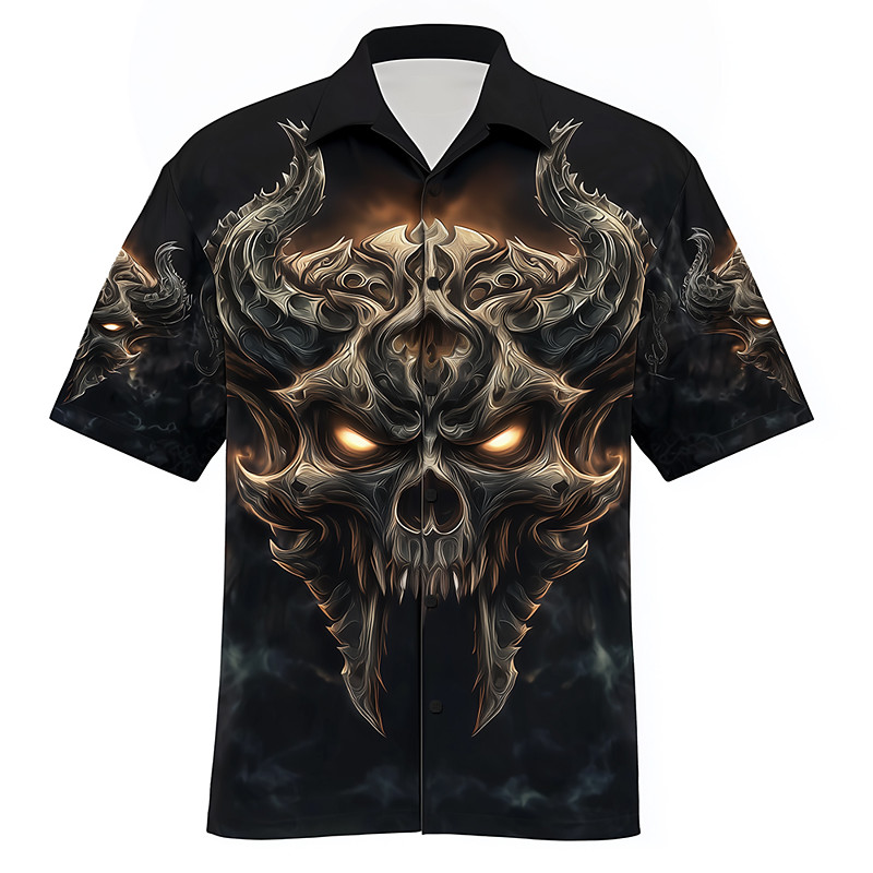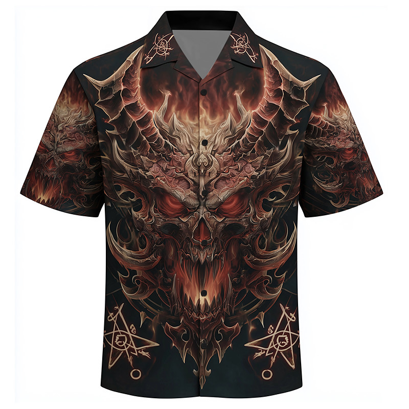Men's Skull Flame Costumes Shirt Cuban Collar Shirt Button Up Shirt...