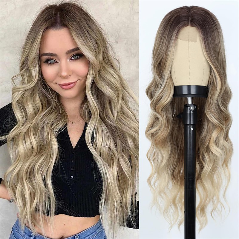 Long Dirty Blonde Wig for Women Ombre Wavy Blonde Wigs Synthetic 26...
