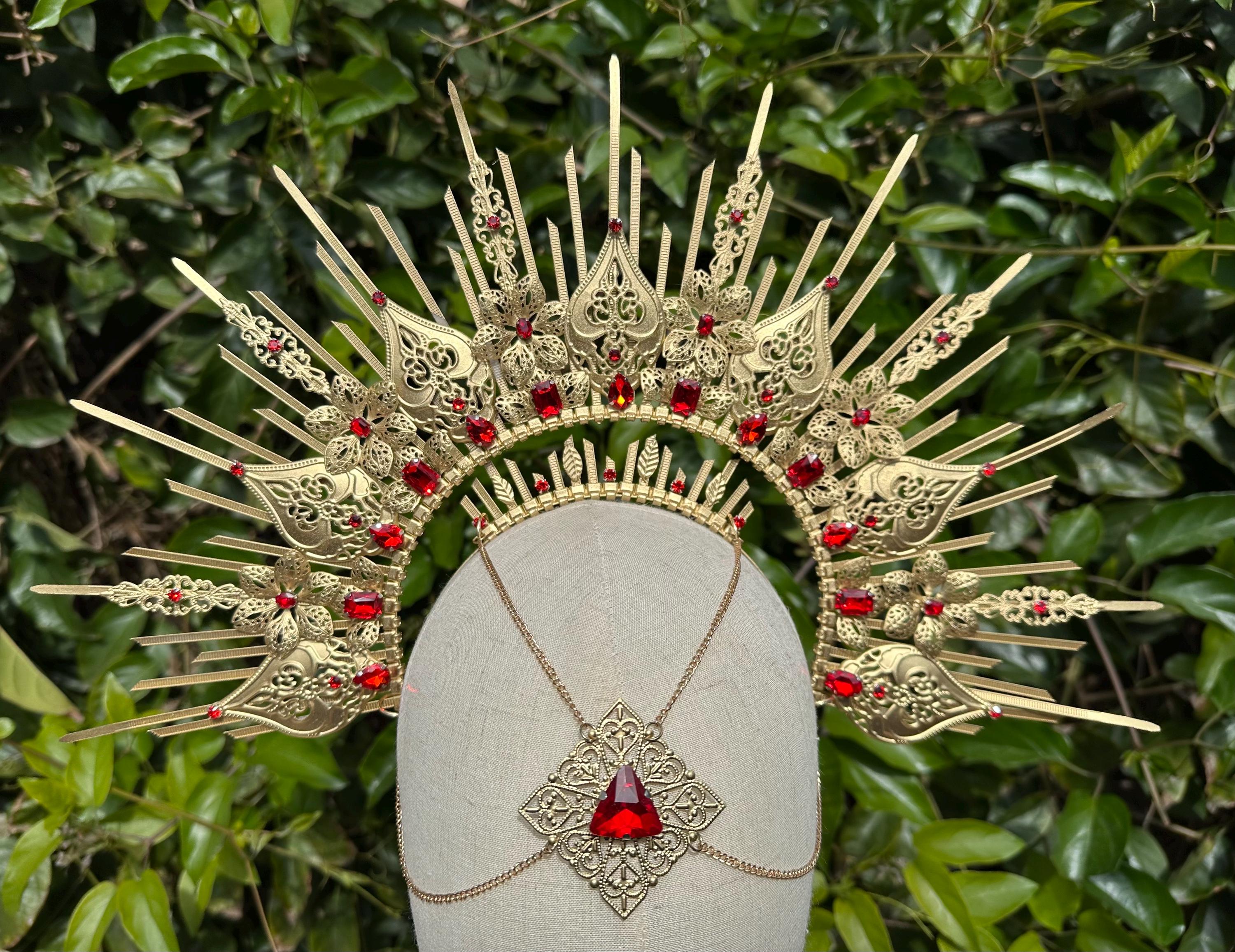 Red Halo Crown, Sunburst Crown, Embellished Customizable, Gold Halo...