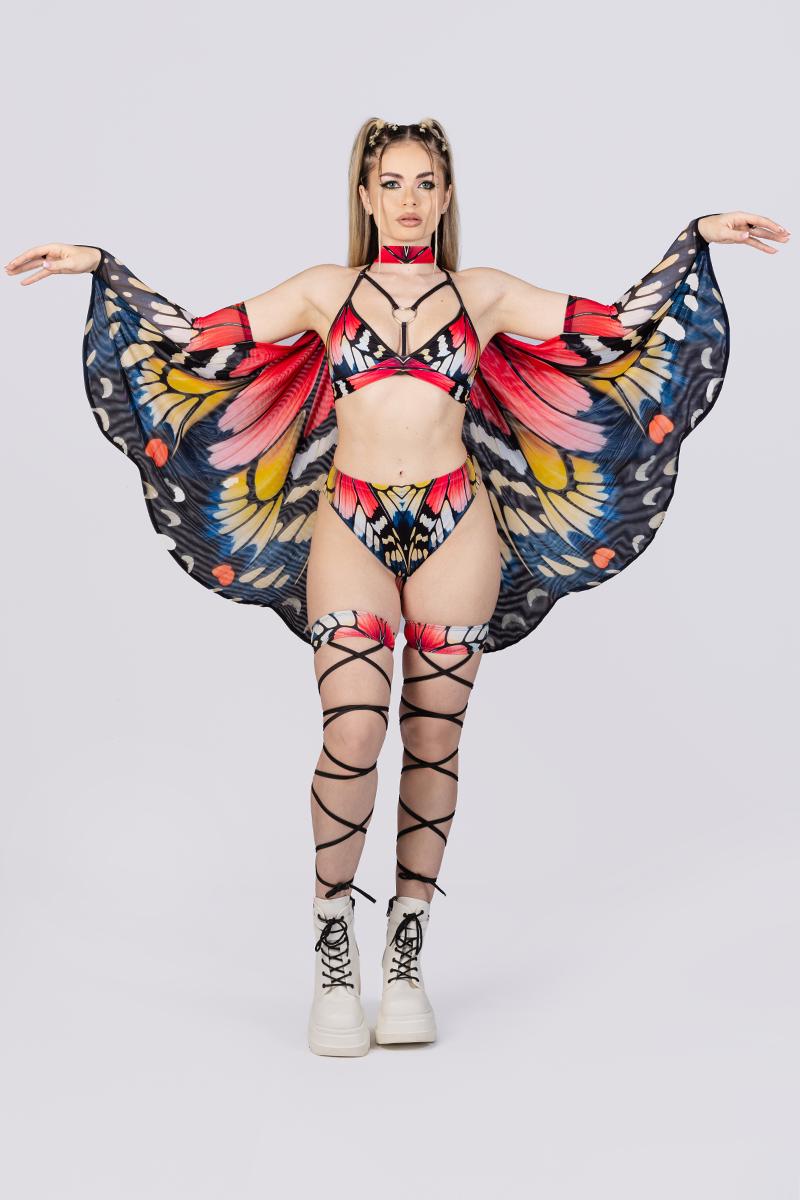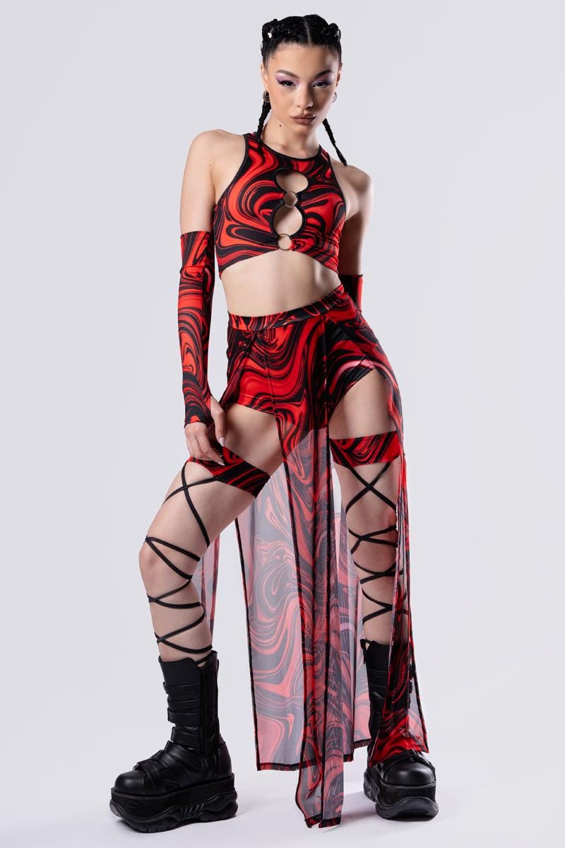 Red Rave Outfit, Red Crop Top, Keyhole O-Ring Crop Top, Rave Set of...