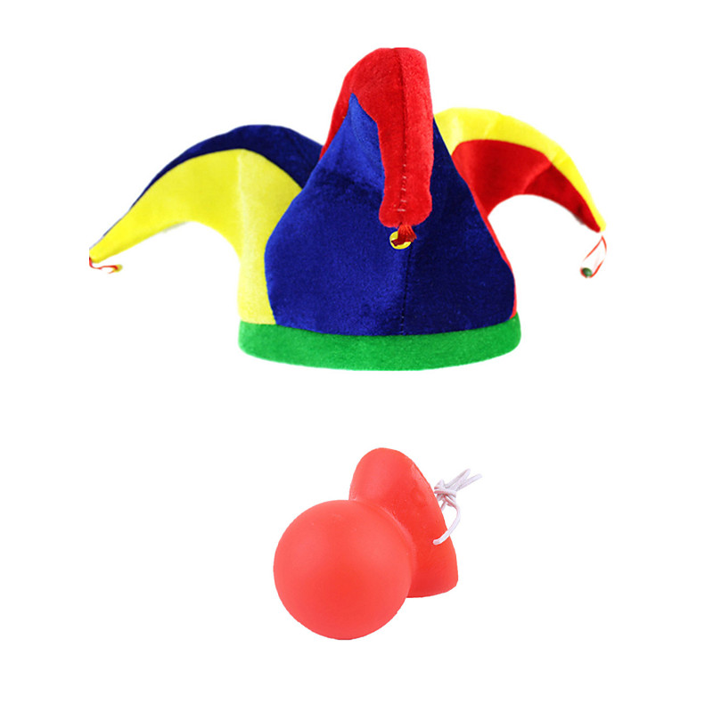 Men's Polyester Jester Hat and Clown Nose Set – Perfect for C...
