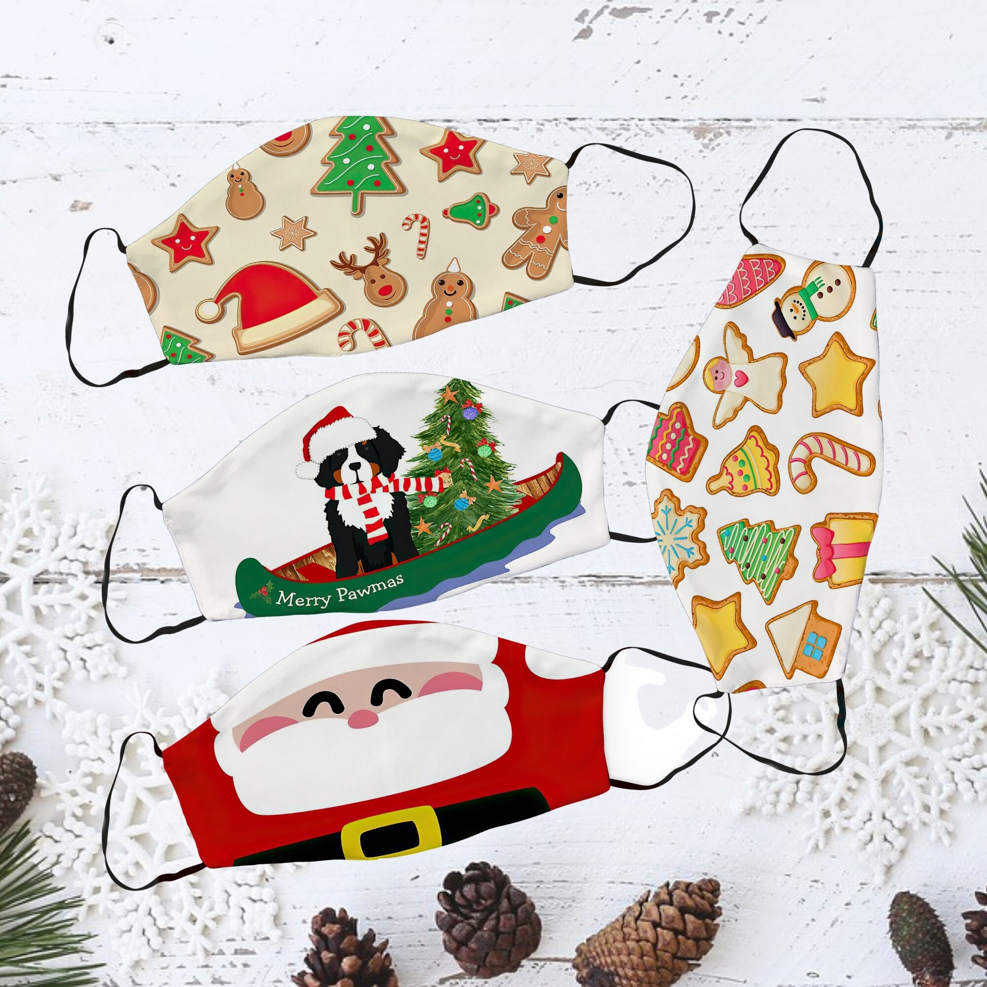 "Christmas Face Mask, Santa Face Mask, Washable Face Mask, Adjustable Face Mask, Reusable Face ...