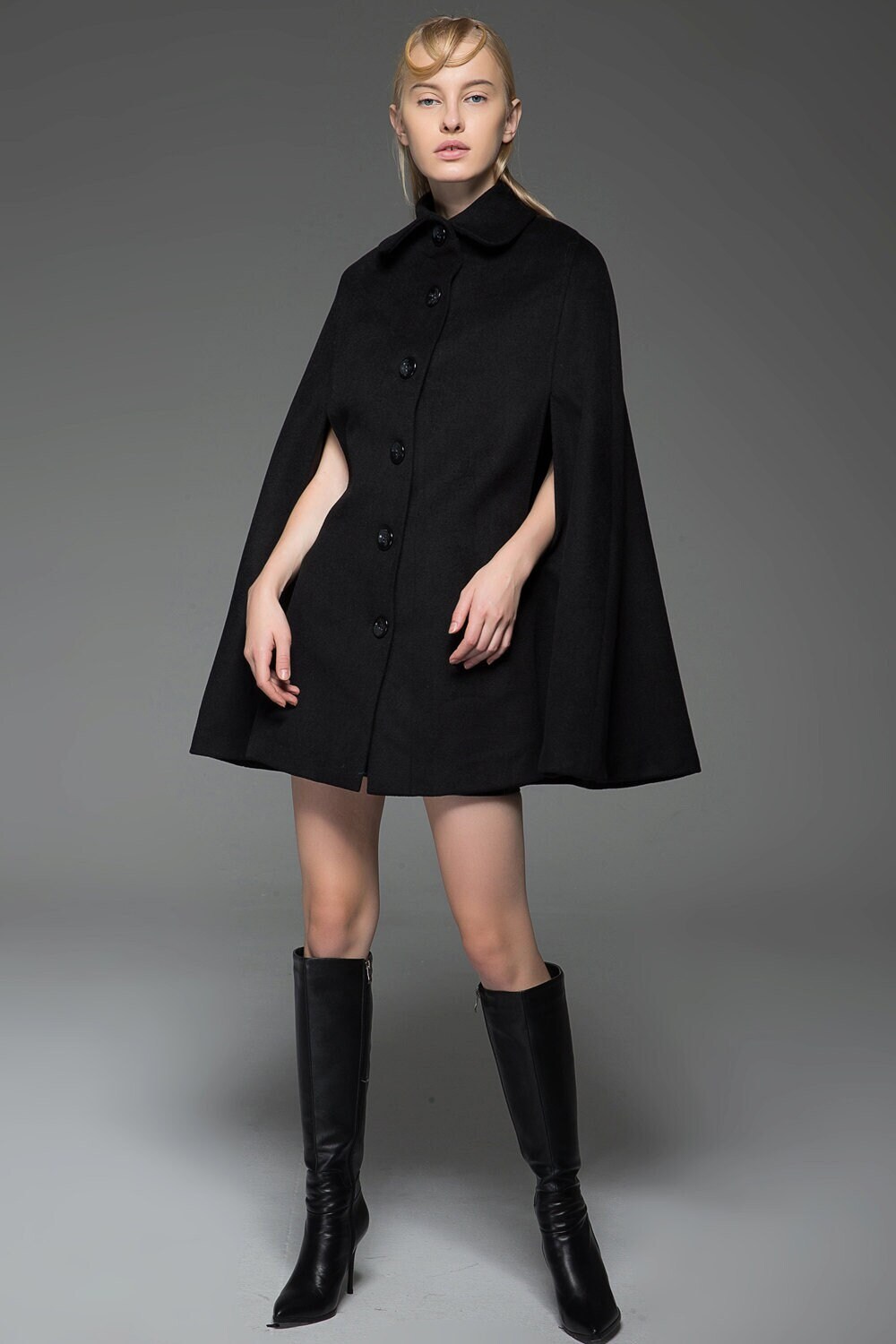Wool cape coat, Black wool cape, Winter cape coat, black wool ponch...