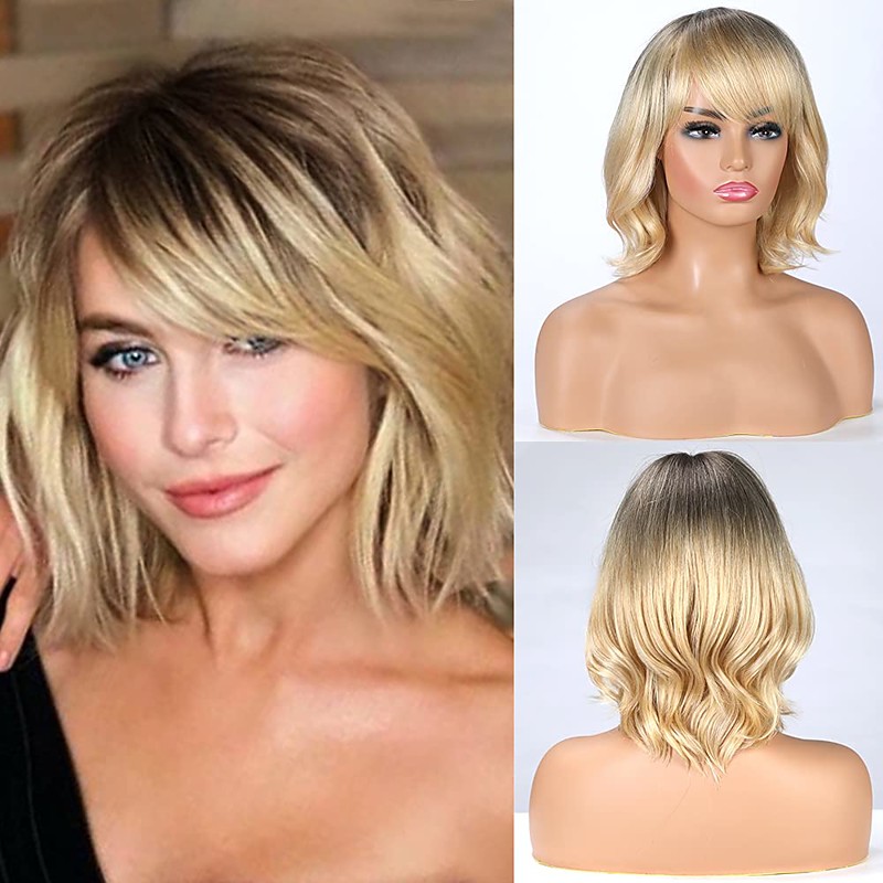 Blonde Human Hair Blend Wigs for Women and Female,Natural Ombre Hai...
