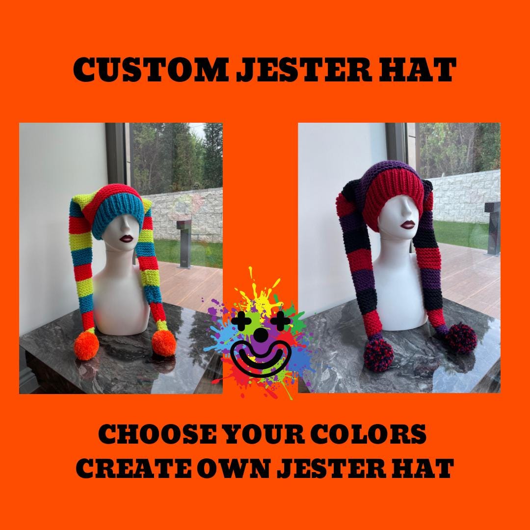 CUSTOM Knit Long Jester Harlequin Hat Hey everyone! I am open to customization of our Jester Hat now...