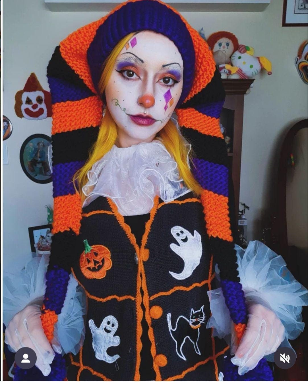 Knit Long Jester Harlequin Hat, Halloween Clown Jester Hat, Funny J...