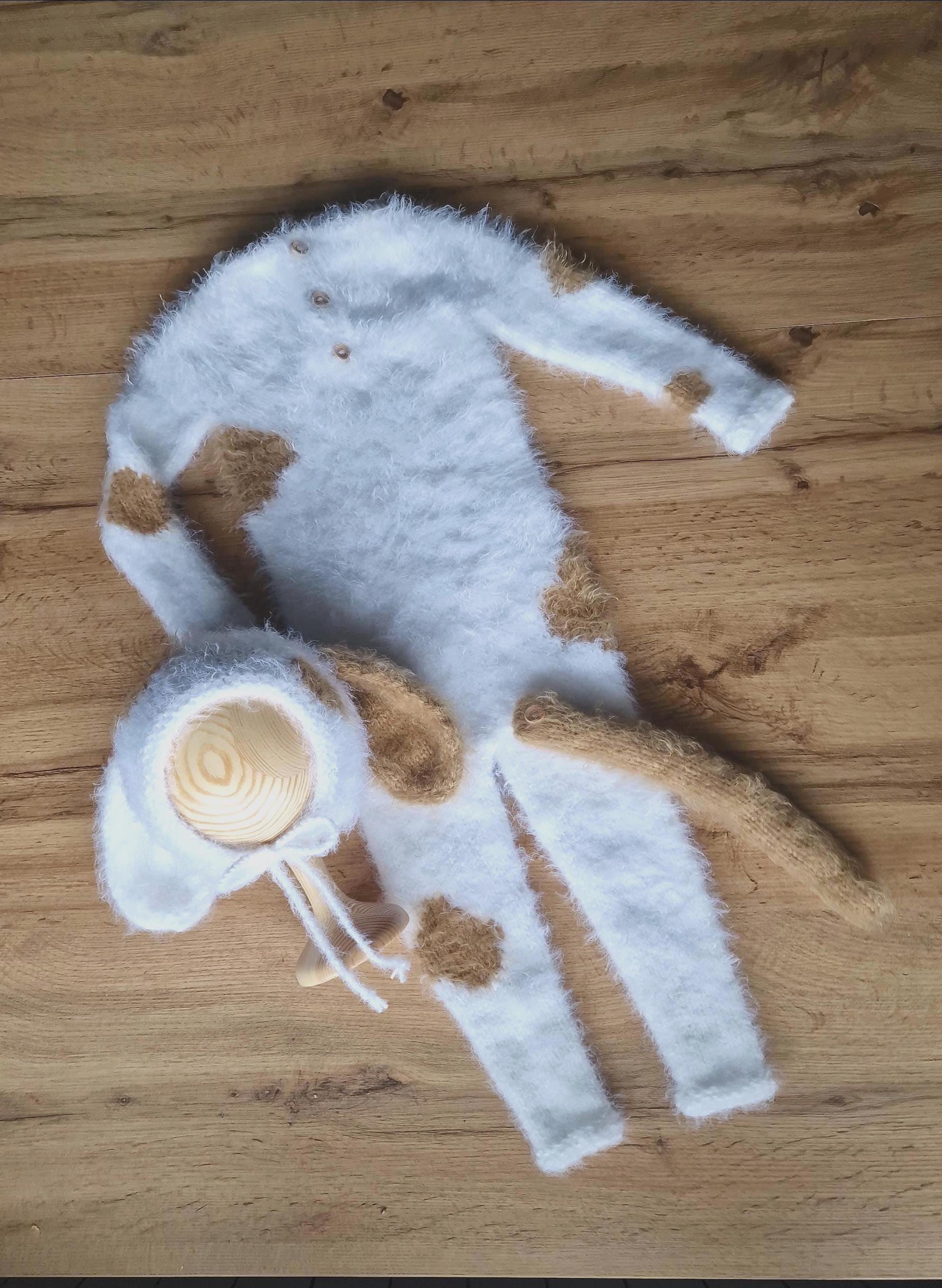 Hand knitted puppy hat + matching romper with tail, super cute photo prop made from very soft yarn. ...